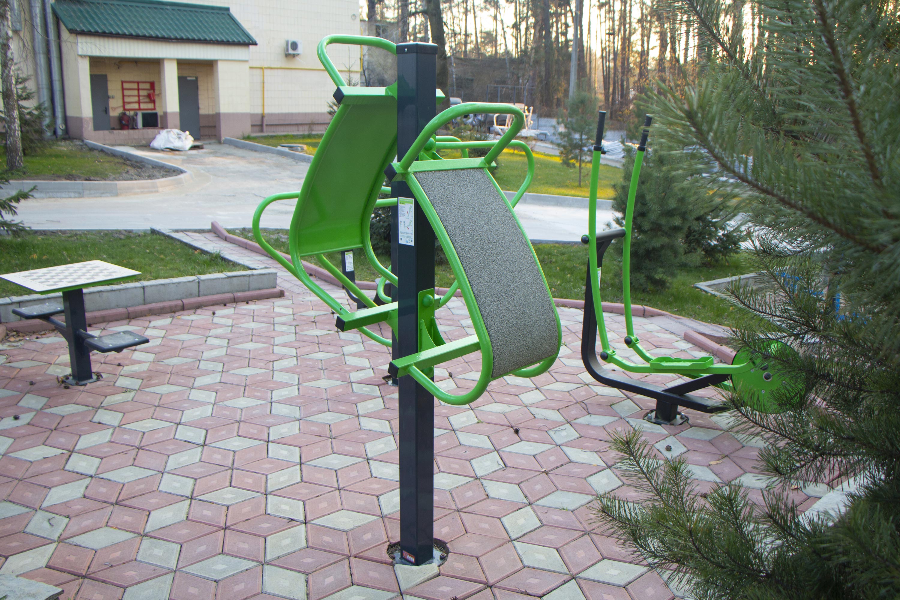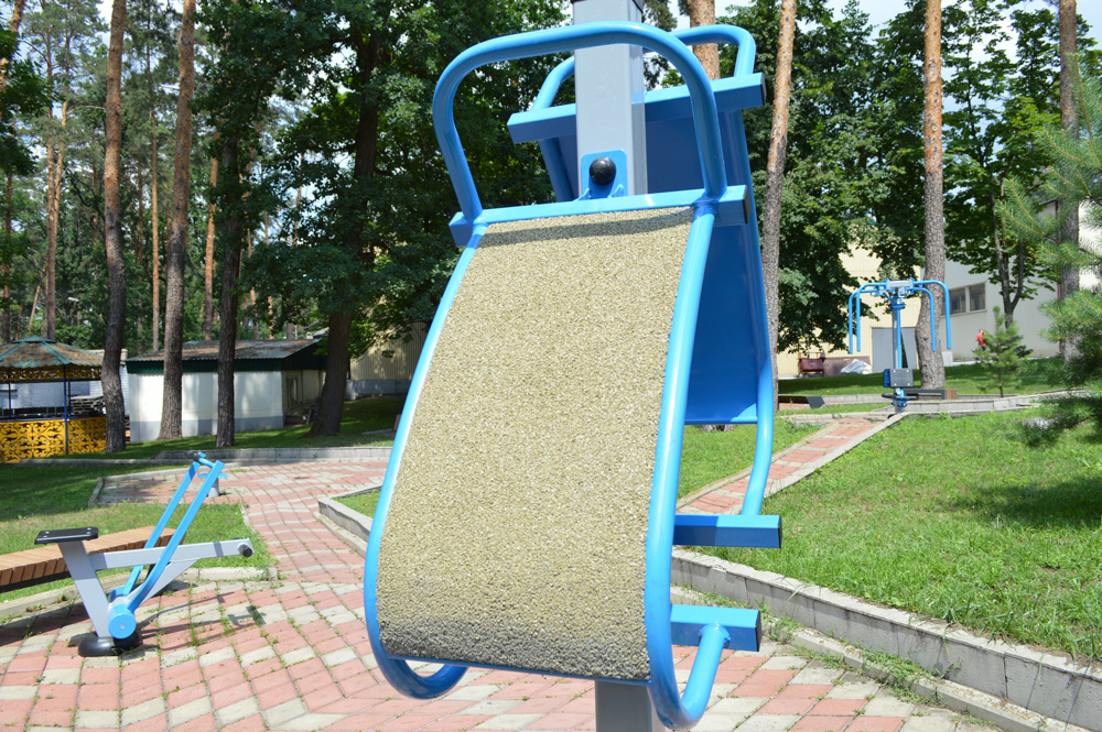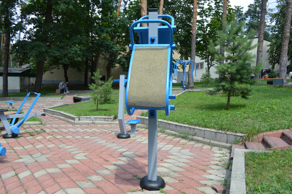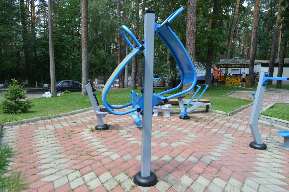 This machine is aimed at working out your abs, which is extremely important for your health. Strong Abdominal muscles improve the digestion process and the work of internal organs. The equipment is double-seat and lets two athletes do exercises at the same time, not disturbing each other. They can train in the fresh air because the design of the machine gives you the possibility to place it outdoors.