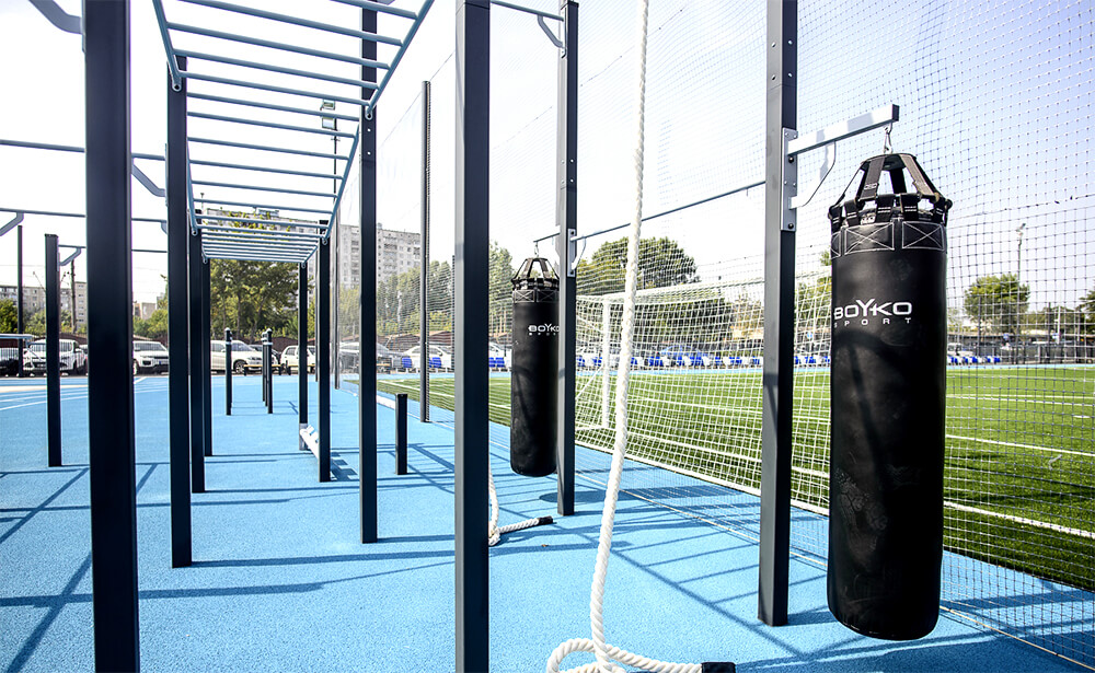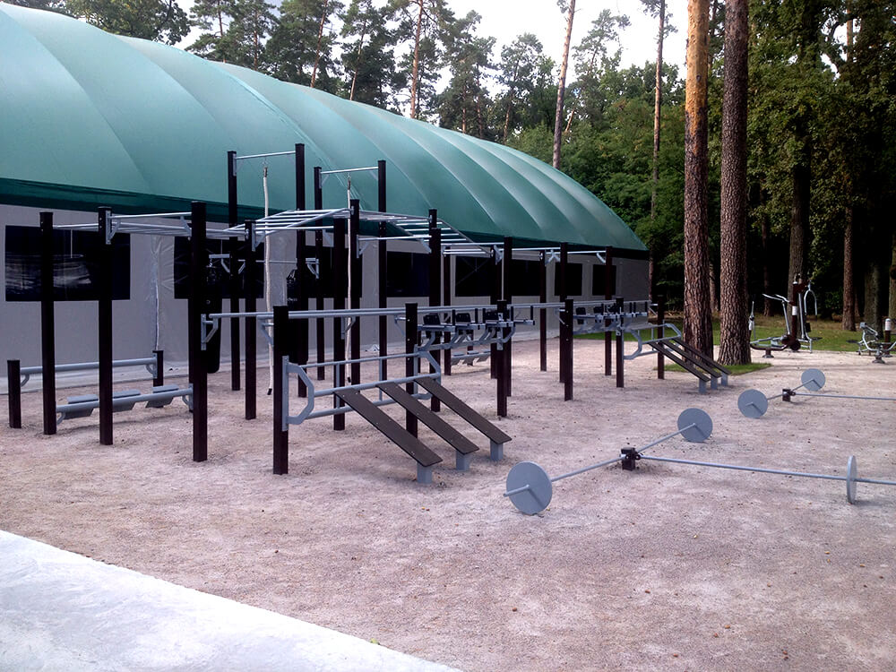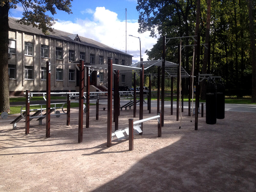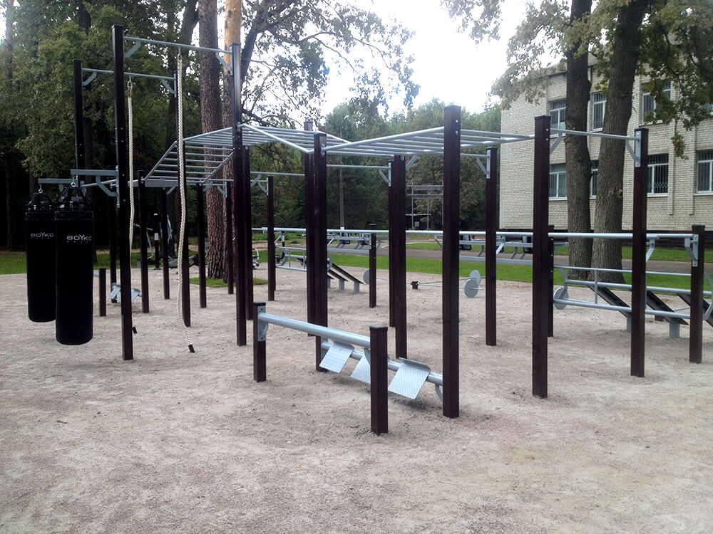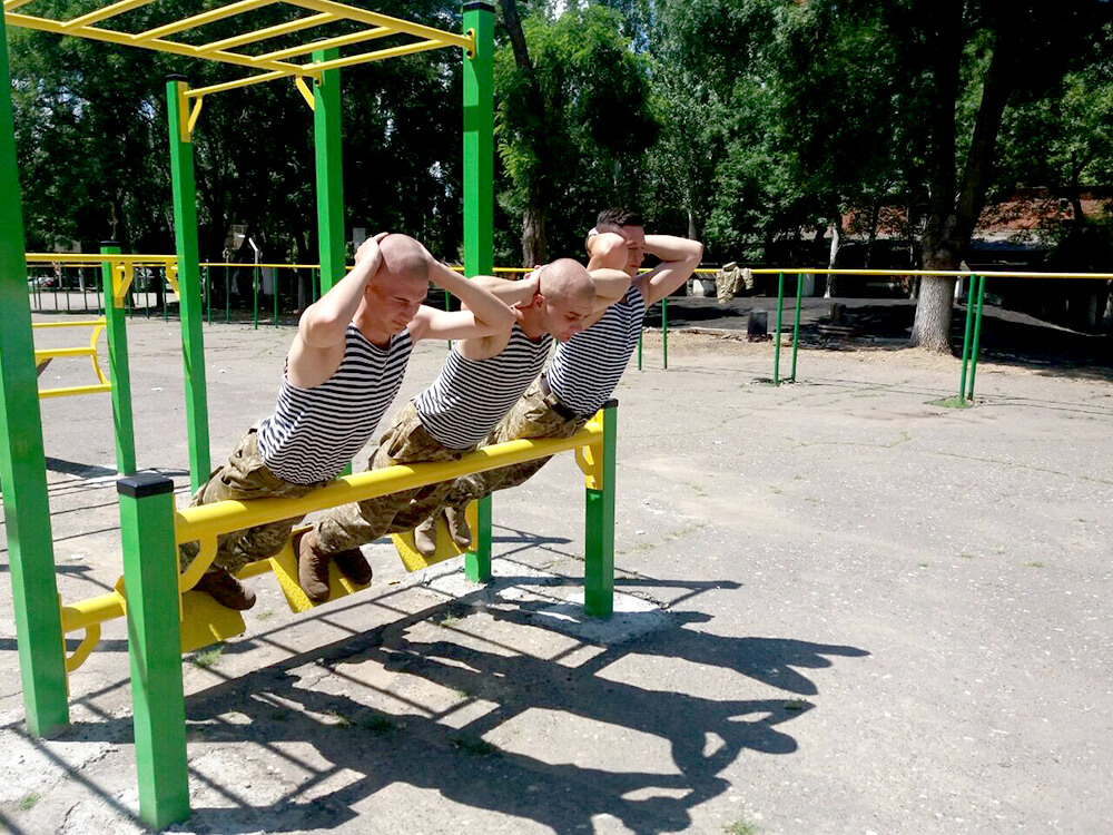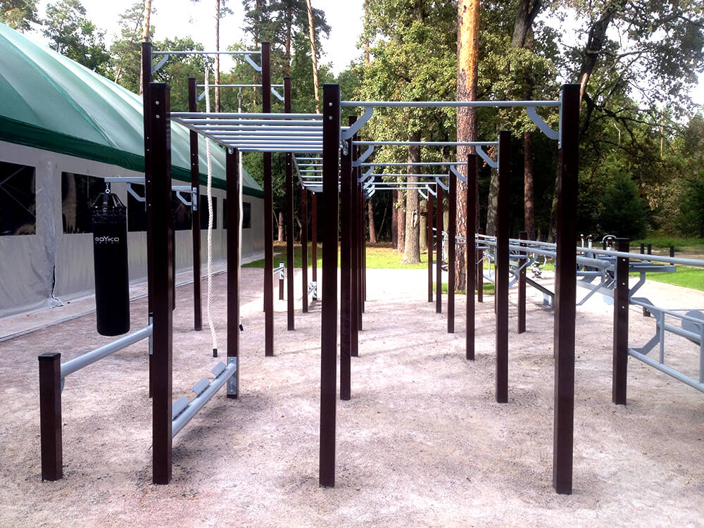 At this gymnastics army complex Interatletika UT131, up to 35 people can perform exercises at the same time. This workout construction includes horizontal and monkey bars, a Swedish ladder, an abs bench, hangers for punching bags, etc. It’s recommended for installation in military units and sports lyceums, stadiums, and other large facilities. The complex has everything for the military personnel and other law enforcement agencies to undergo military training.