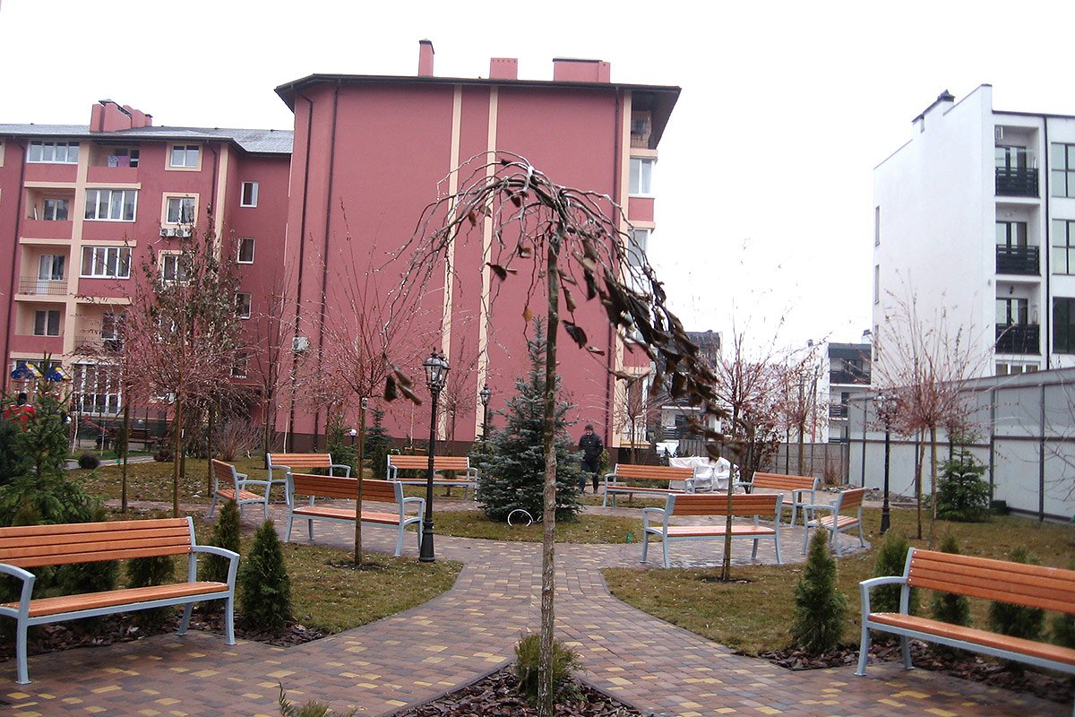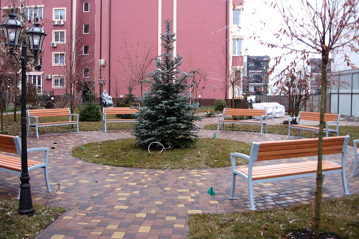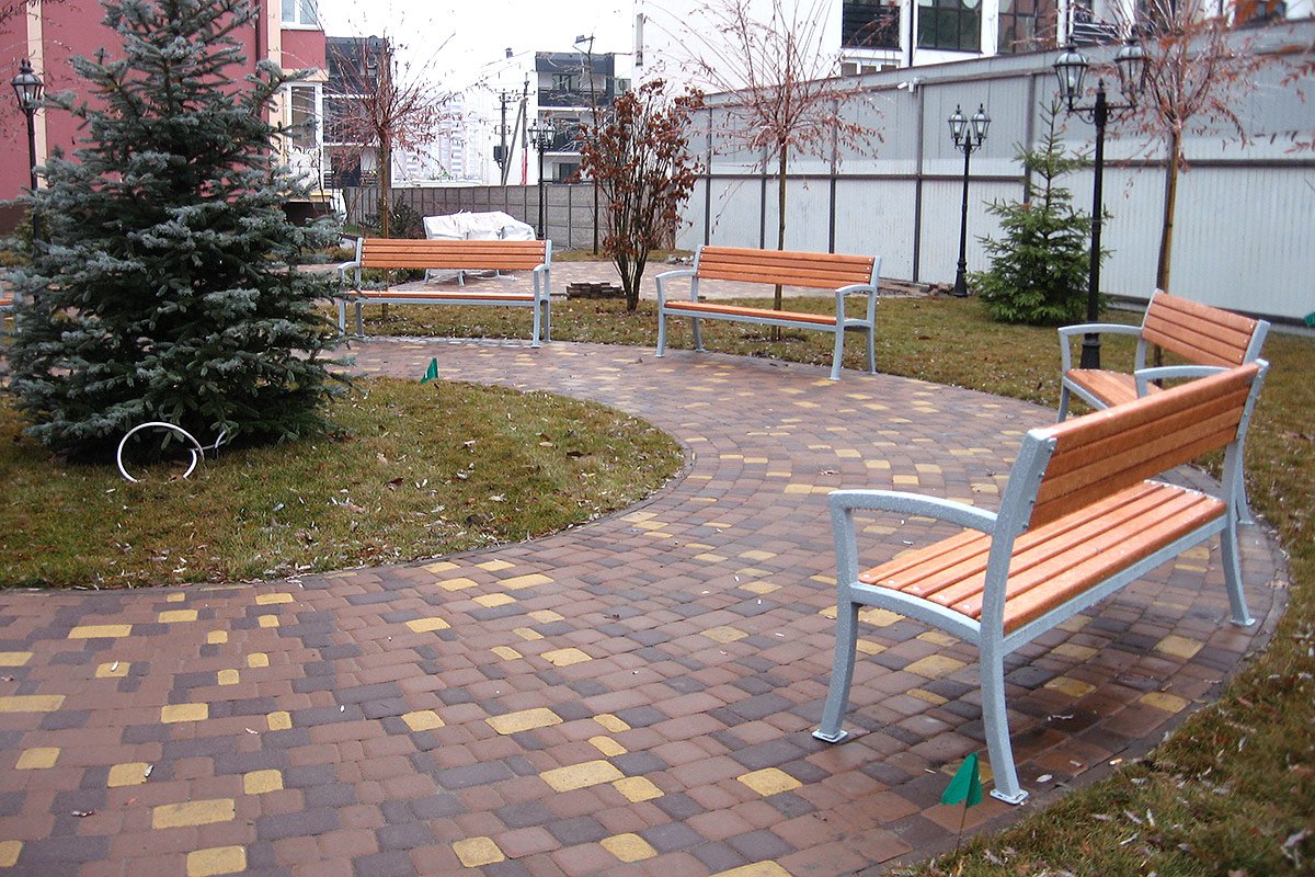 The bench is made of a high-quality steel profile that can withstand a significant load and wood. Metal parts are painted with powder paint. The bench is installed by concreting or screwing.