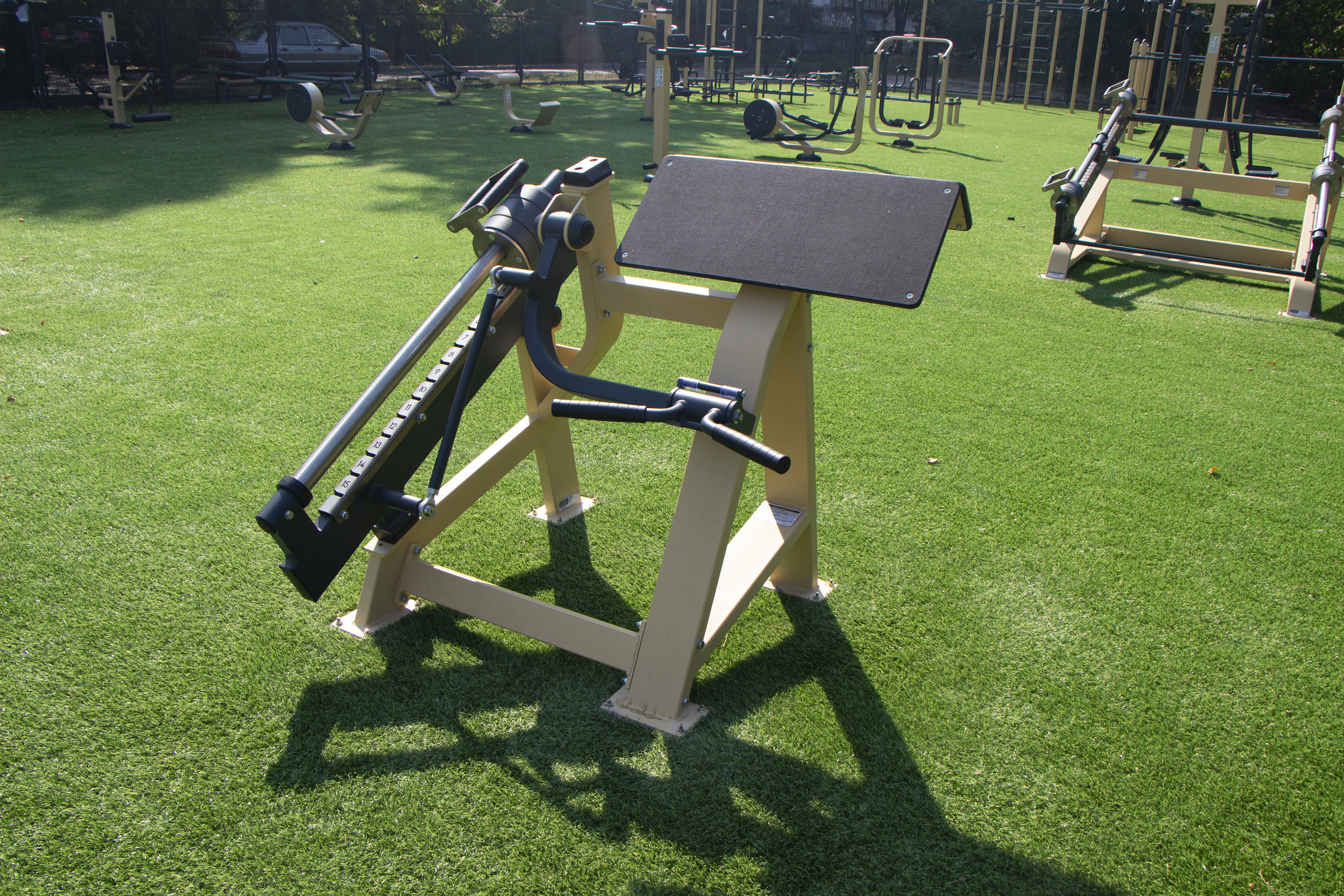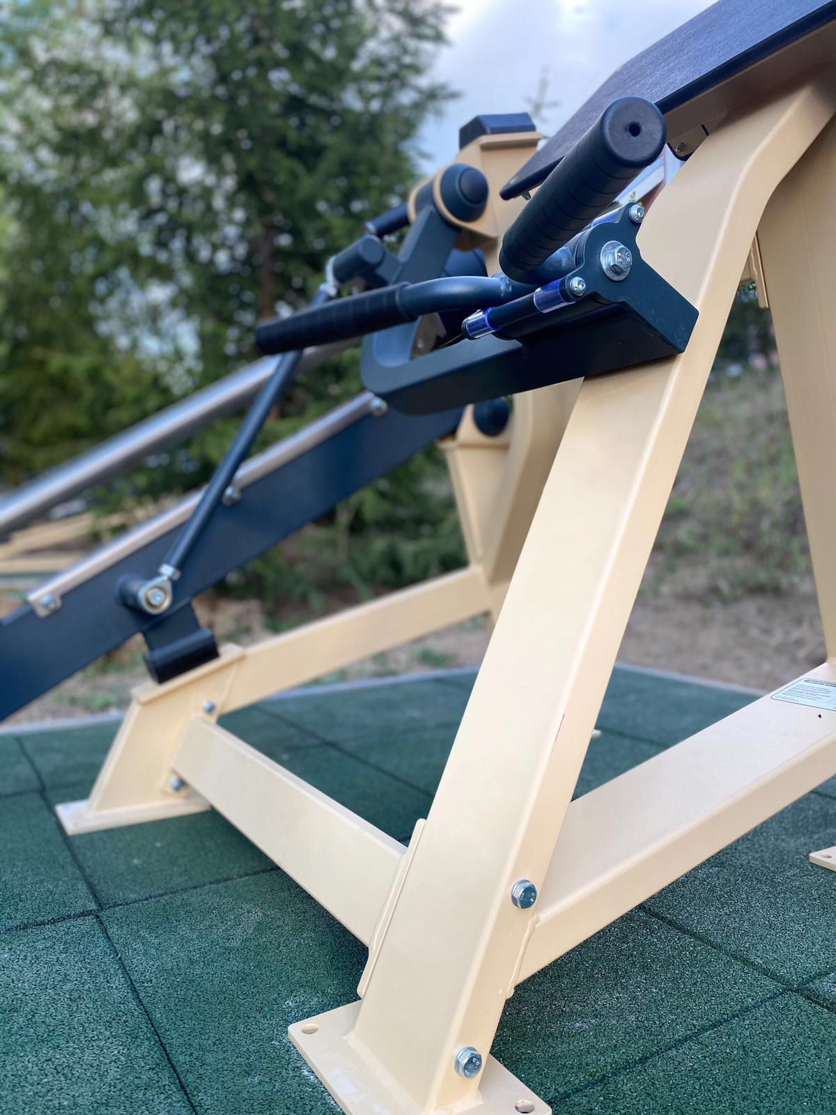 Super strong anti-vandal construction is made of 3 mm steel. Zinc-galvanised version of the equipment has the highest level of metal protection against corrosion. The machines are adapted to any unfavourable external factors and stand out with the best anti-corrosion resistance, thanks to the covering of zinc. You can install the equipment both outside and in a gym. Undeniable advantages of the machine are trendy design, fine function, and wide colour palette.