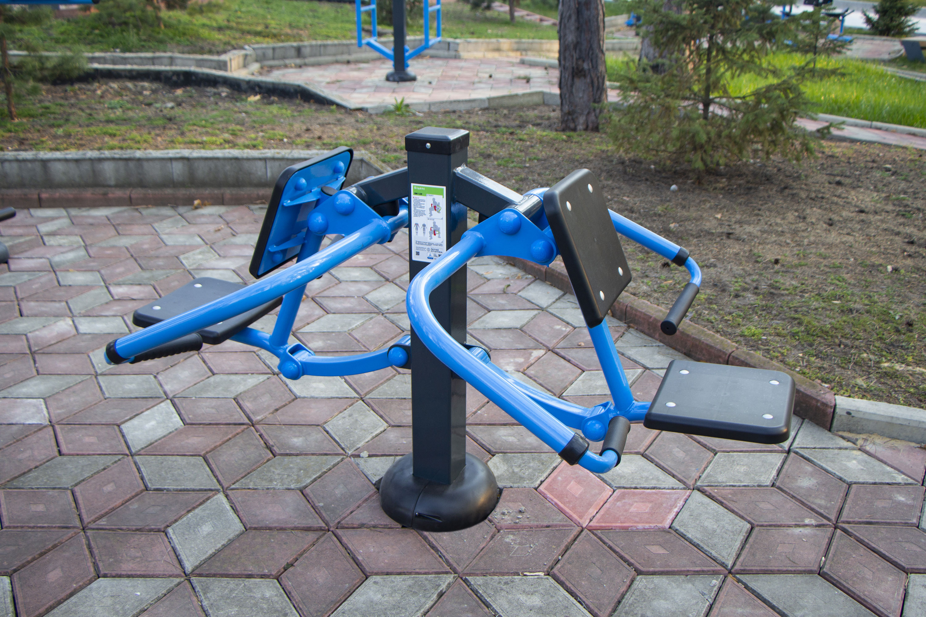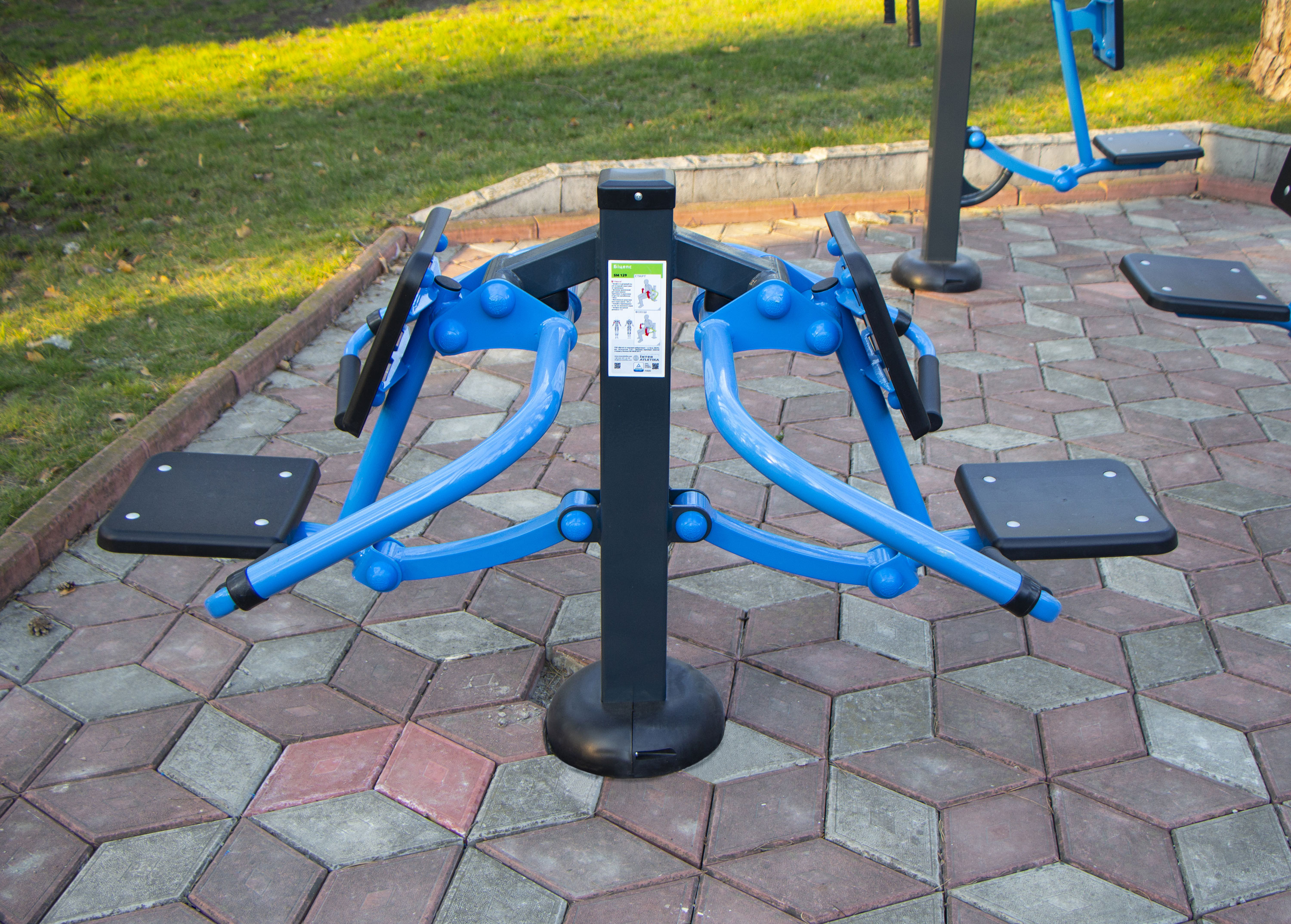 The Biceps machine is the main training equipment for improving respective muscles. It helps you get strong and beautiful arms. Thanks to the construction of the SM129, you can train here with your friend simultaneously in the fresh air.
