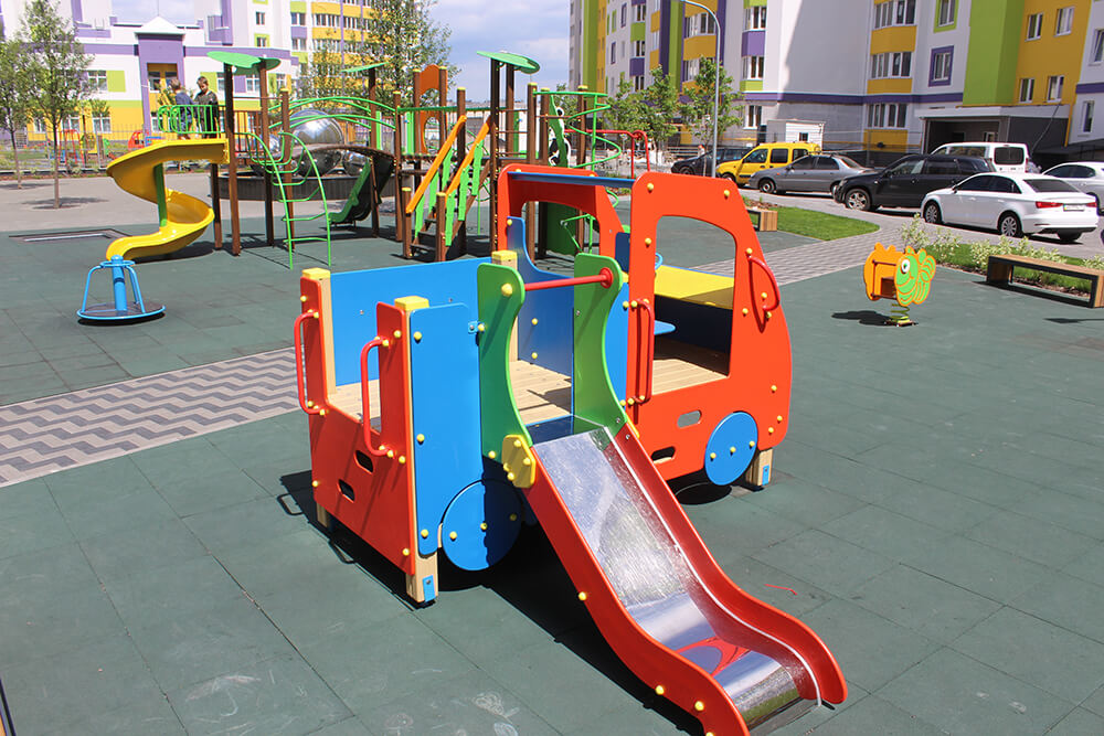 This machine with a slide Interatletika TE501 will make every playground even more beautiful and cuter. Children will not only be able to play in the machine itself but also ride down the slide. The car with a slide helps parents manage the activity of their kids and boosts their physical development.