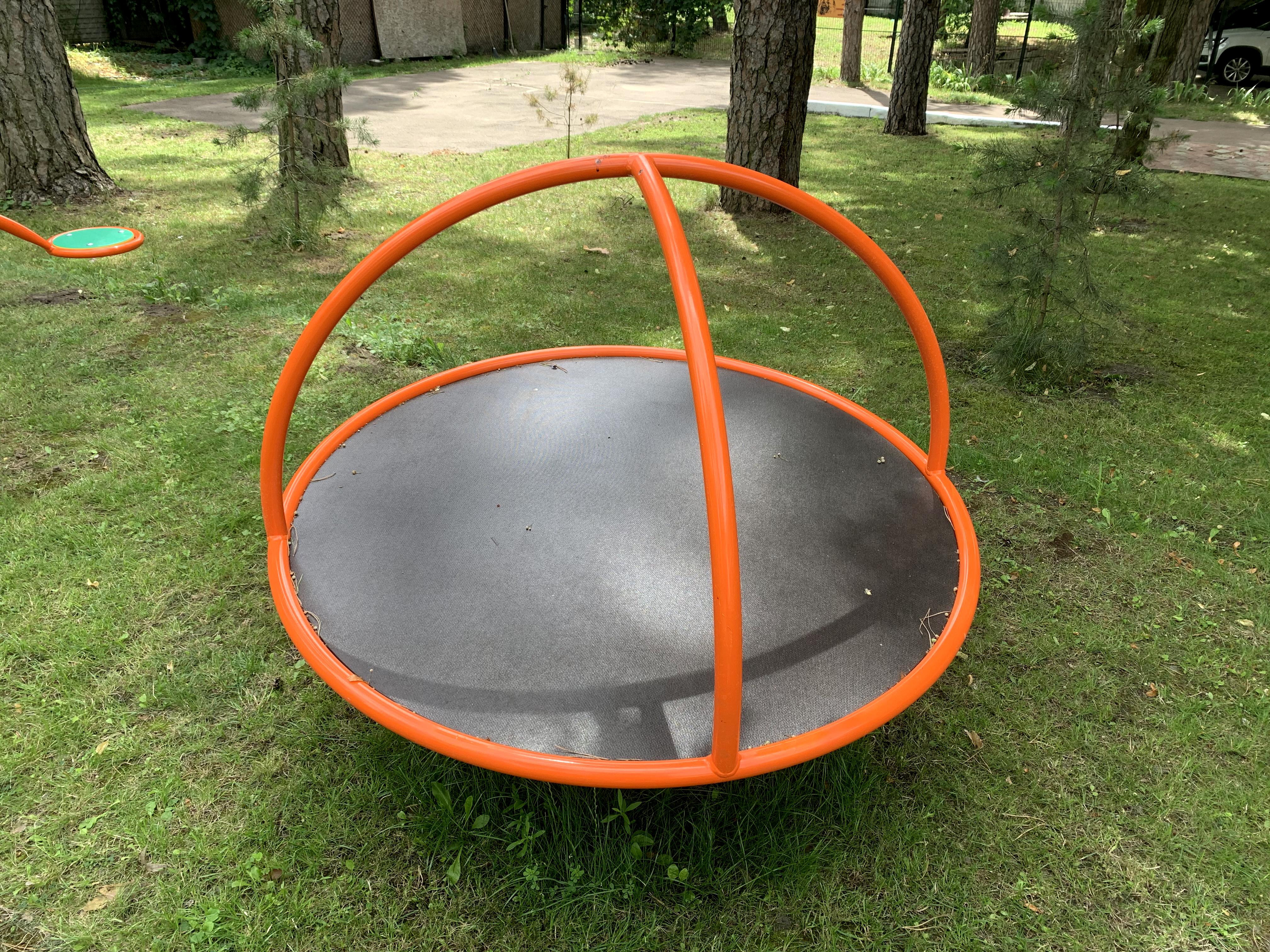 The platform is not located parallel, but at a slight incline to the ground, which will add a bit of extreme and bright emotions. The carousel rotates around its axis, due to the weight of the child, who is on it and spins the product under its own power. There are no seats on the carousel, so you must hold on tight to avoid falling.