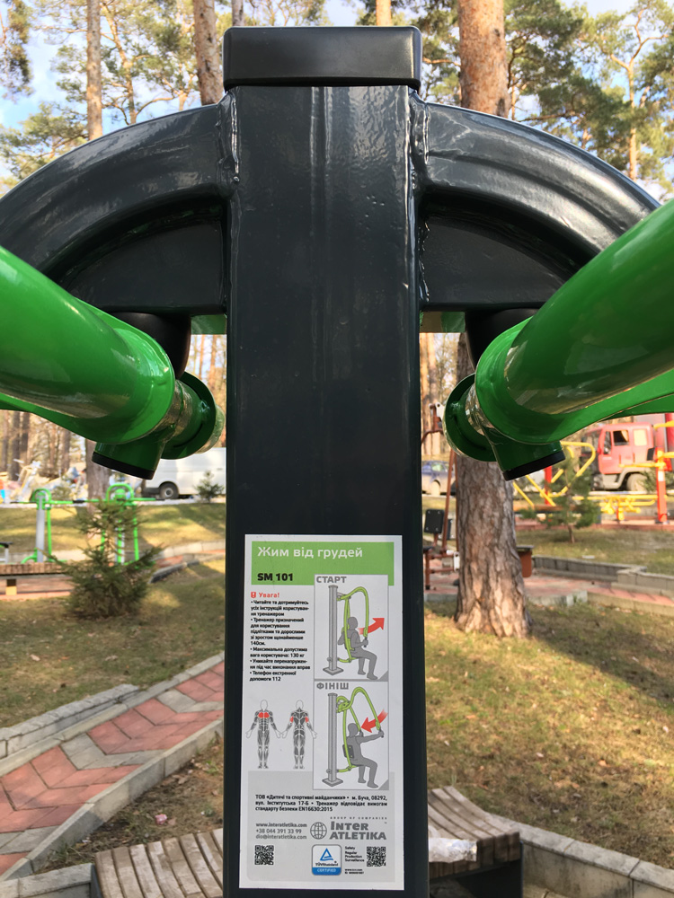 Sports equipment for open-air workouts is a new direction for exercises with burdening for any athlete. Such machines as this Chest Machine let combine workouts and the benefits of fresh air. It’s aimed at working out chest muscles and triceps.