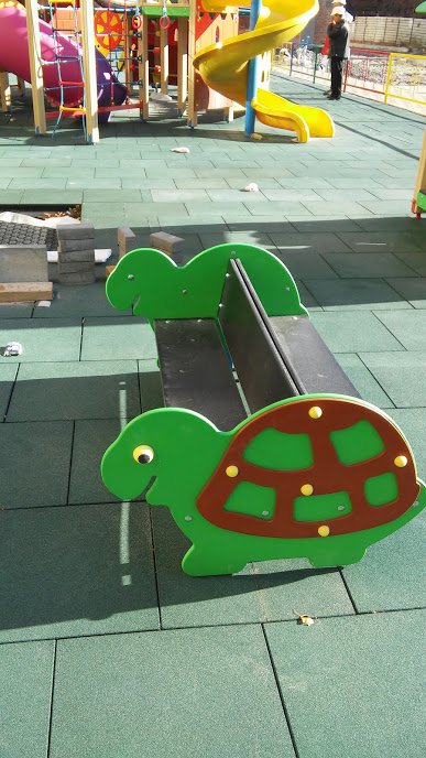 This bench “guarded” by two turtles is aimed at parents, who can rest here, while their kids actively spend time in a playground. For more convenience, the bench is equipped with a back. Thanks to the charming design, the bench will easily fit into the exterior of a game complex. Therefore, Turtle Children's Double Bench Interatletika S746 is a perfect solution to decorate a public or a private playground.