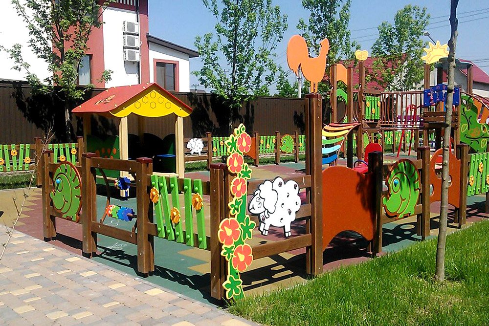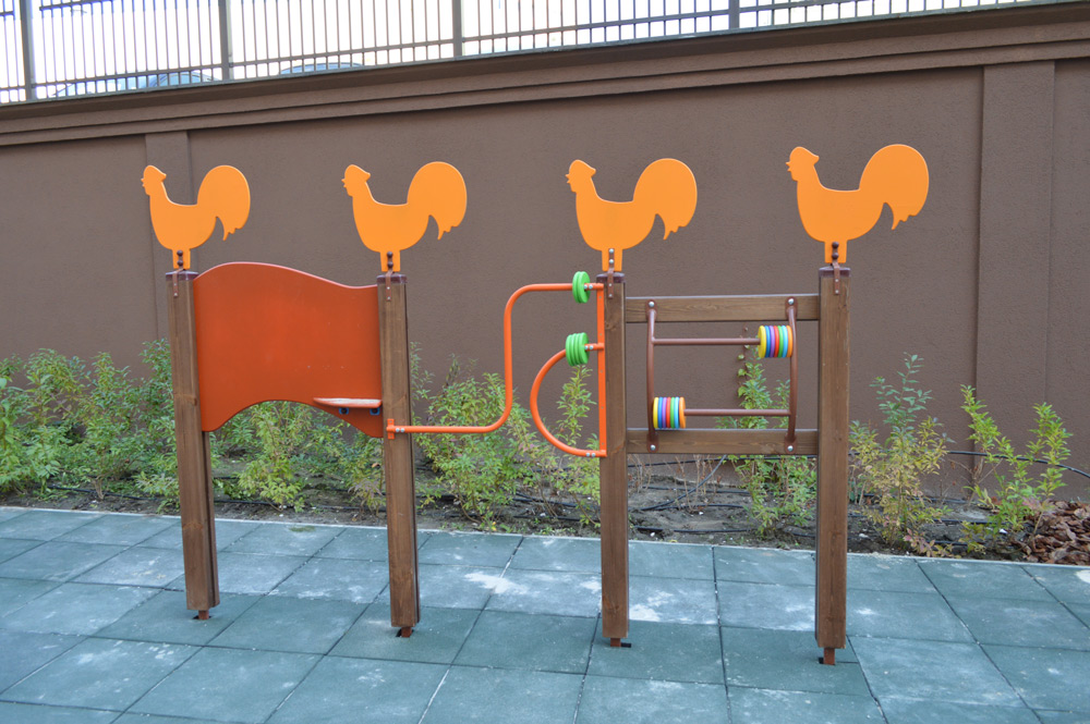 Post 1.5 m S764.2 is intended for reliable fastening and connection of individual sections into a single fence. Installation is made of hardwood. The element is carefully polished. The rack doesn’t contain sharp corners that can cause injury. The inventory is decorated with colourful decorative elements and a rooster on its top. It is used for arranging parks, lawns, gardens, and other recreation areas.