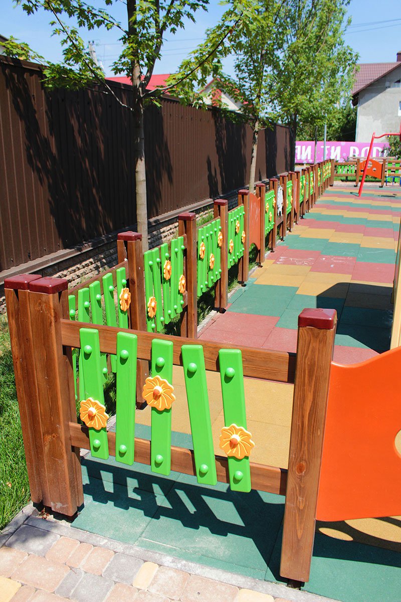 Flowers Fence section Interatletika S764.9 is aimed at the final decoration of playgrounds. It allows parents to comfortably sit in a designated area near their children. This fence section is a beautiful, bright decoration of playgrounds, which contributes to the additional attraction of children and their parents. Playgrounds equipped with such elements fit harmoniously into the surrounding landscape.