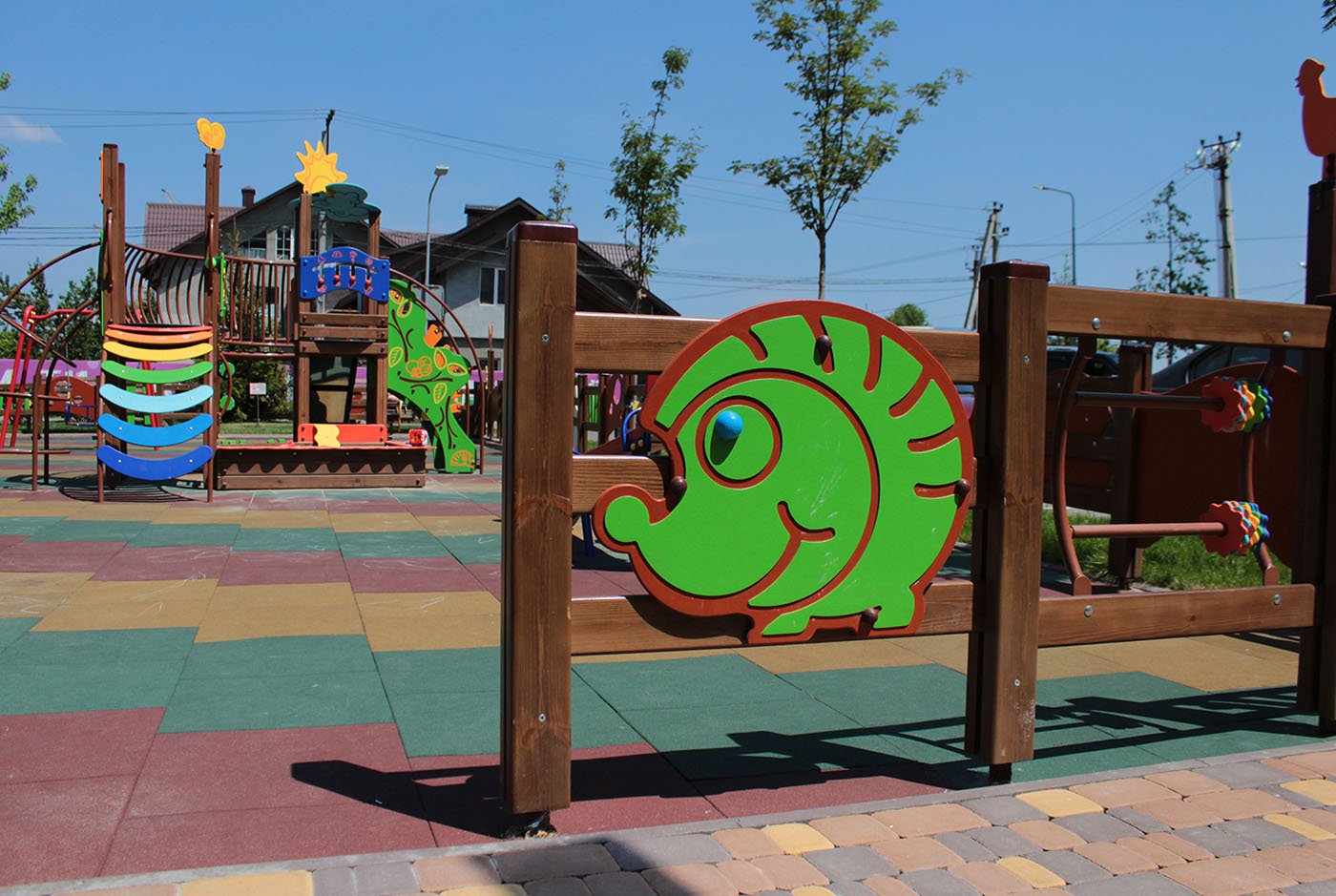 A fence is an important part of play areas, which inspires confidence in parents about the security of their children. It clearly separates a zone for kids from a carriageway, for instance. However, such outdoor equipment as Hedgehog Fence Section Interatletika S764.5 looks quite childish and visually like an organic part of a playground.
