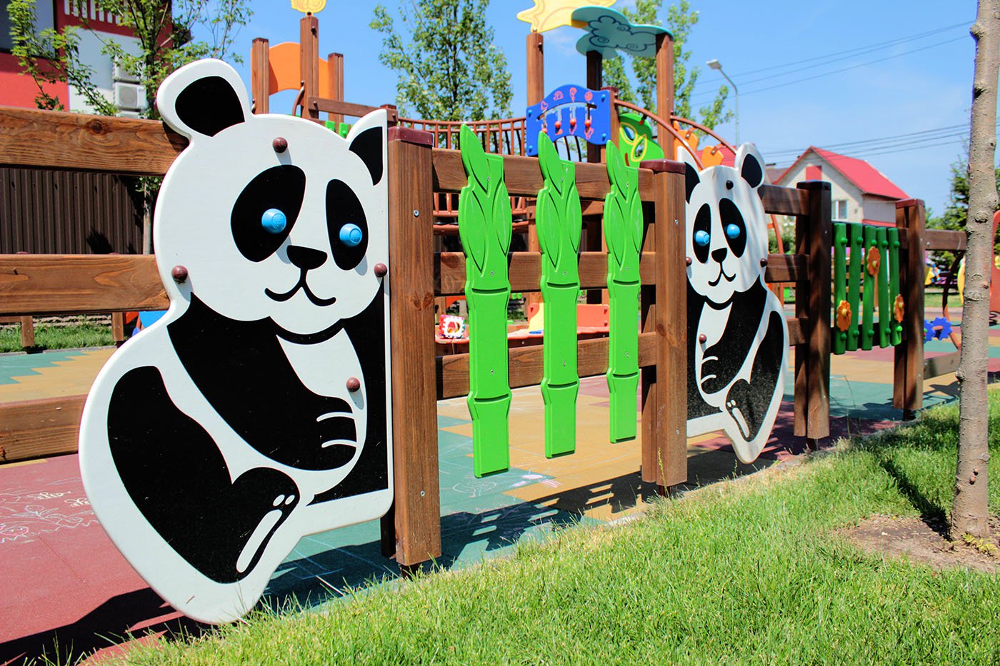 Fences are a basic level of safety for kids, which carelessly play in playgrounds. They are easy to install and create a protected place for children. Panda Fence Section Interatletika S764.6 is part of such a defence. Besides this, it has a good-looking and cute appearance with an image of a panda, which won’t leave indifferent little fidgets.