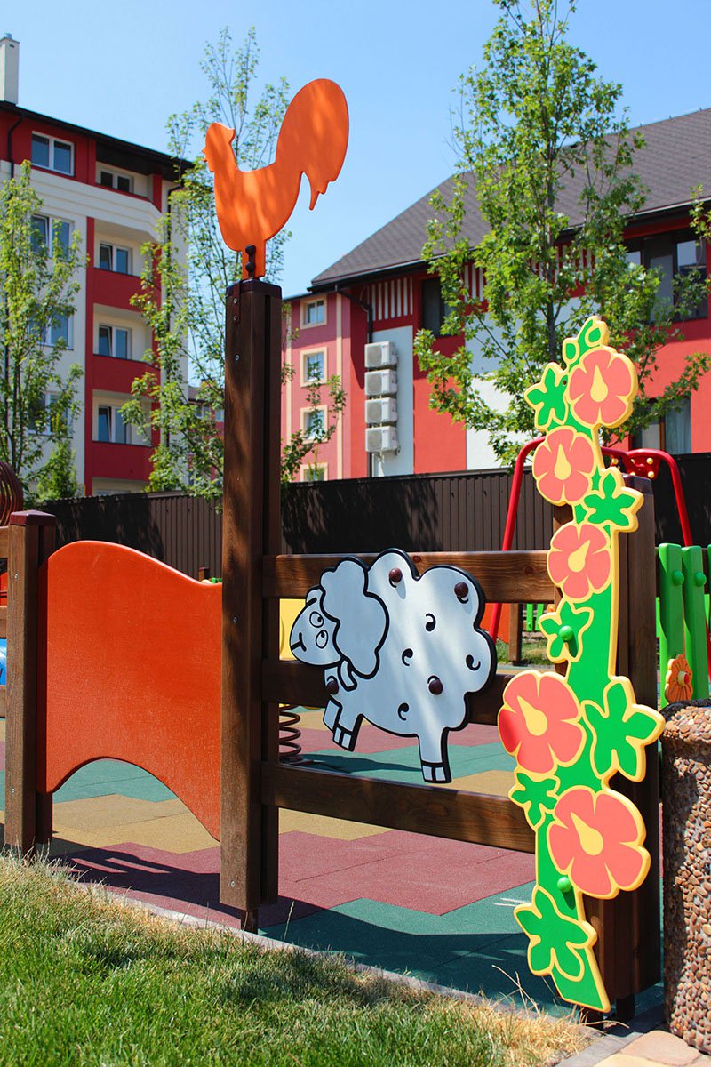 Fences for playgrounds must be not only durable and reliable, aiming at protection but have a cute appearance as well. Sheep Fence Section Interatletika S764.4 meets these two requirements. It has a strong and solid construction, while the little black and white ram draws the attention of kids.