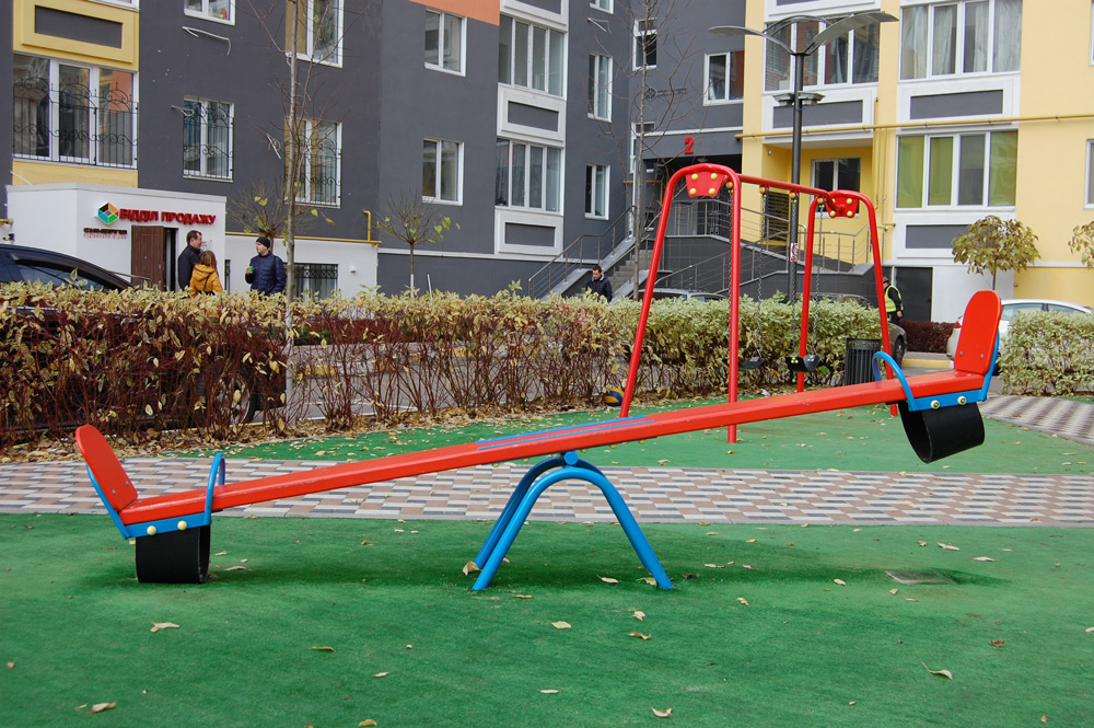 This kid's equipment has a lot of different benefits. Swinging here is amusing and keeps children in the fresh air. It helps them enhance their motor skills and balance as well. One more non-obvious advantage of this swing-balancer is improving the social skills of a kid because he or she needs to cooperate with another child to swing.