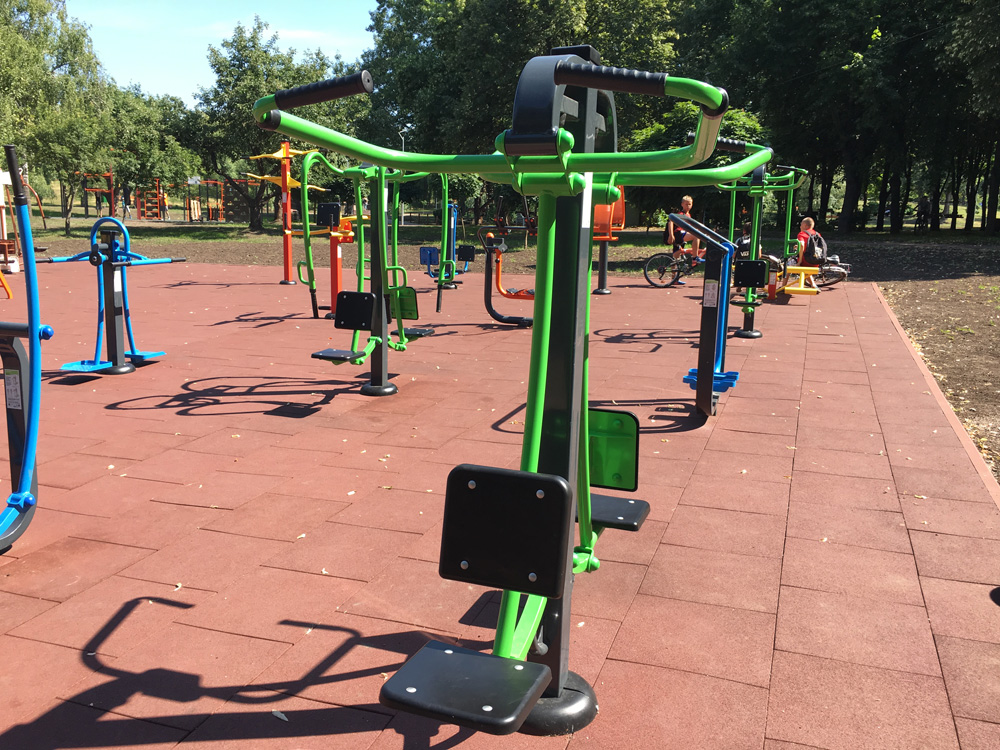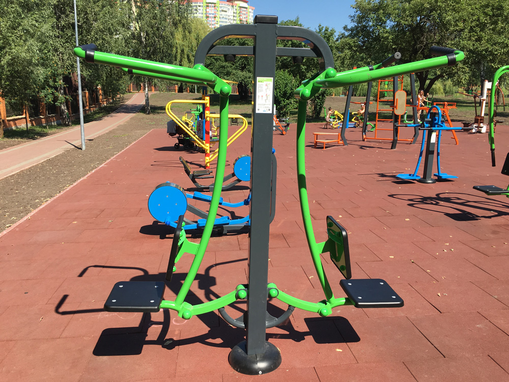 It’s double sports equipment, which is aimed at two athletes working out simultaneously. Moreover, they can train on the streets, thanks to the construction of the machine.