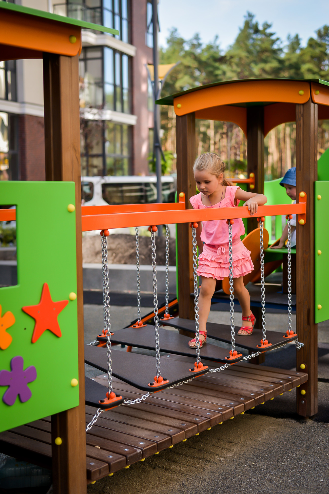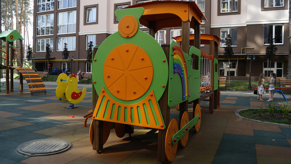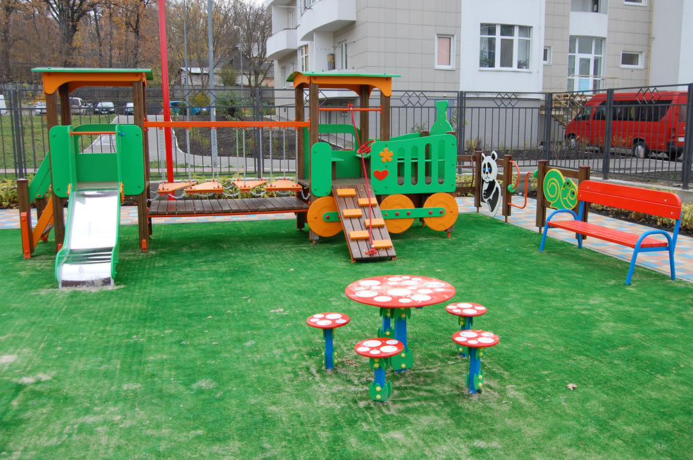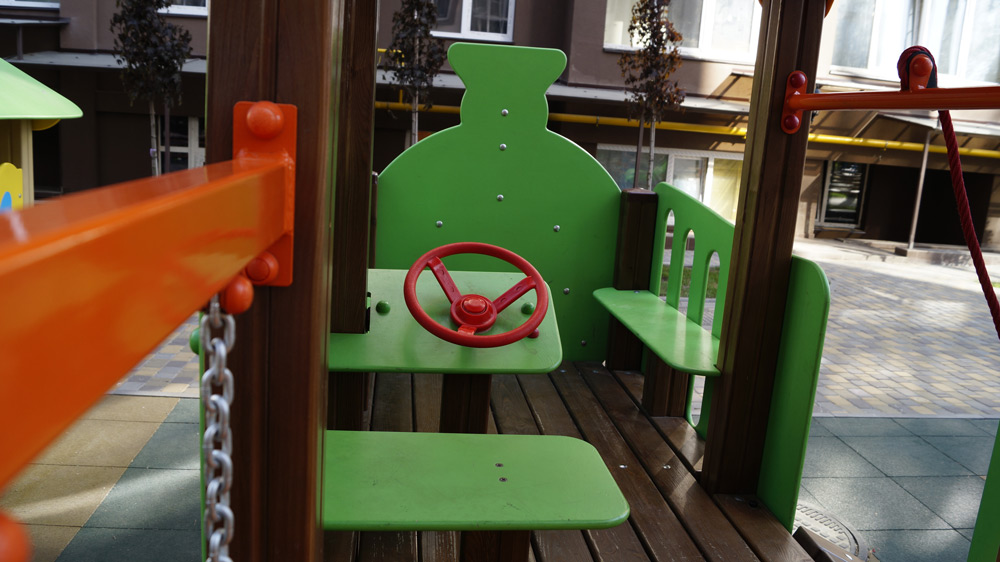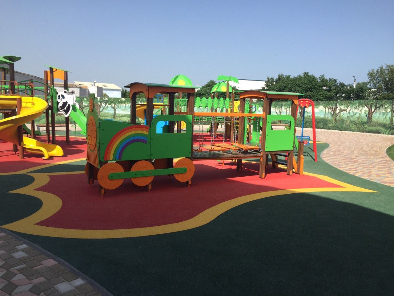 Паровозик имеет лесенку для подъема и спуска, и мостик по которому малыши смогут попасть к вагончику. Вагончик в свою очередь располагает горочку, по которой детишки смогут спуститься.