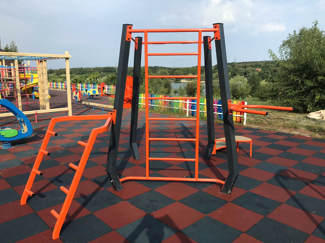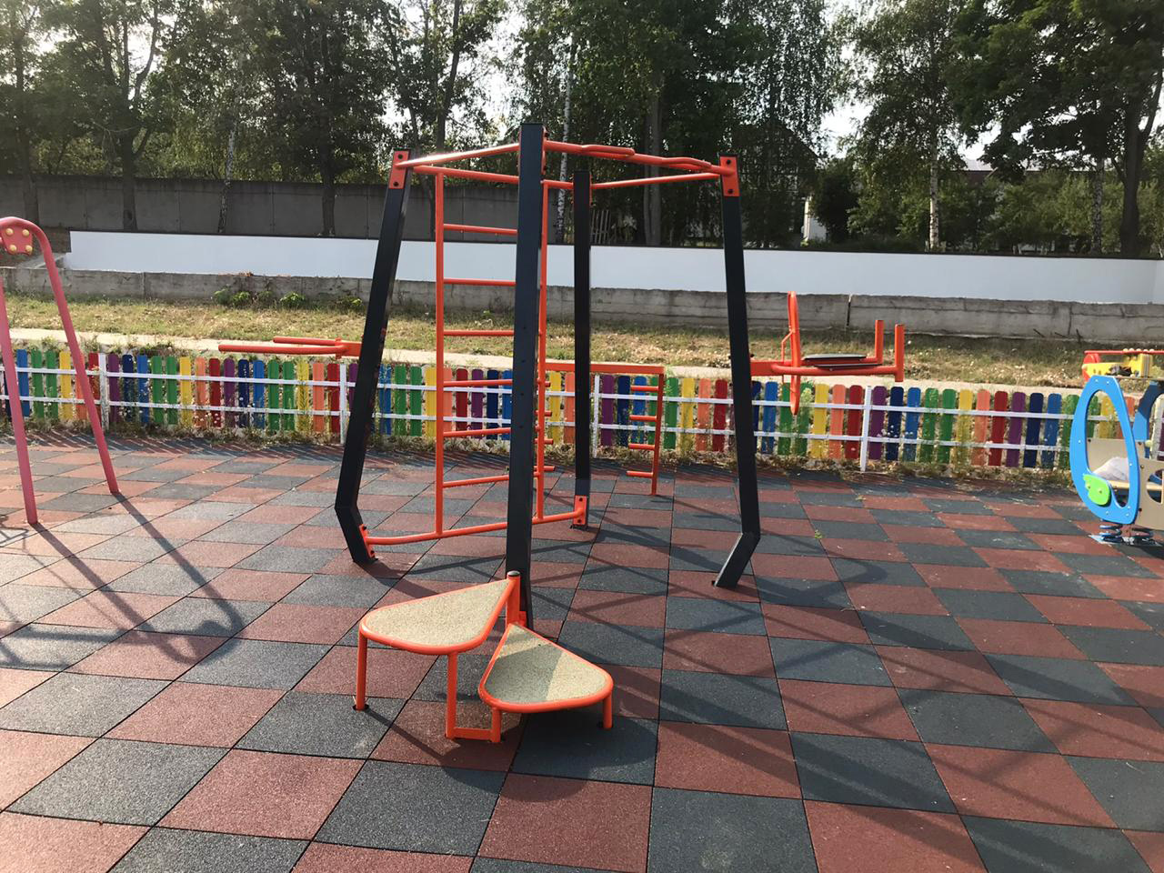 MultiFitness Station SM801 Medium gives athletes ample opportunities for training. Among exercisers are support for push-ups, a platform for stepping, an ab exerciser rack, and monkey and horizontal bars. Therefore, sportsmen may achieve all primary muscle groups of the human body. The strong design of the complex endures heavy loads and makes it possible to work out outdoors.