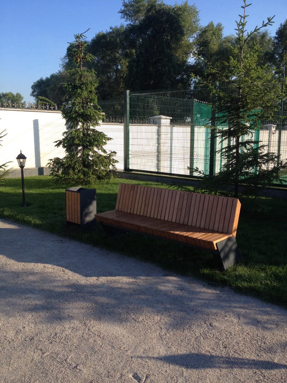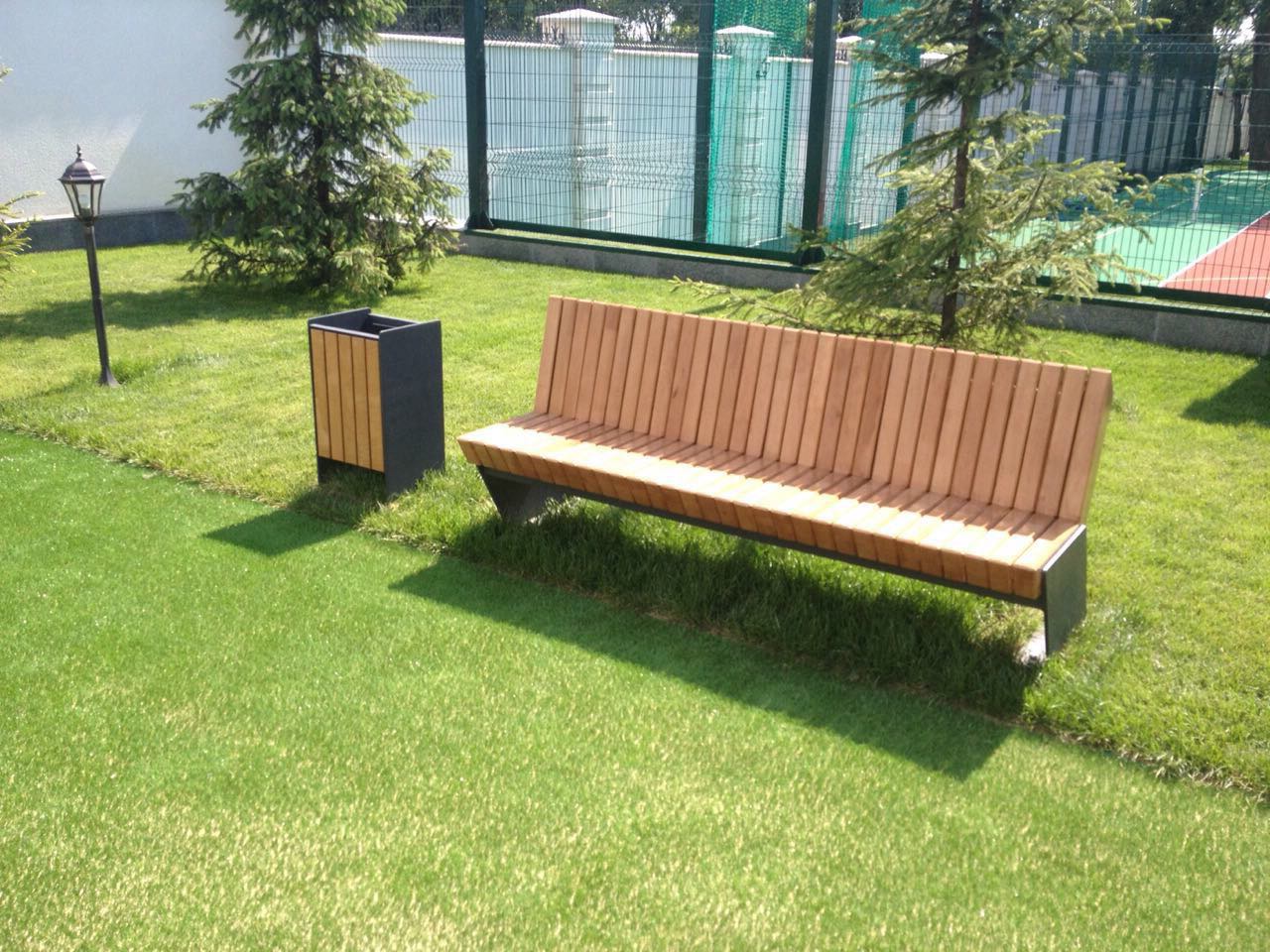 The bench is made of a high-quality steel profile that can withstand a significant load and wood. Metal parts are painted with powder paint. The bench is installed by concreting or screwing.