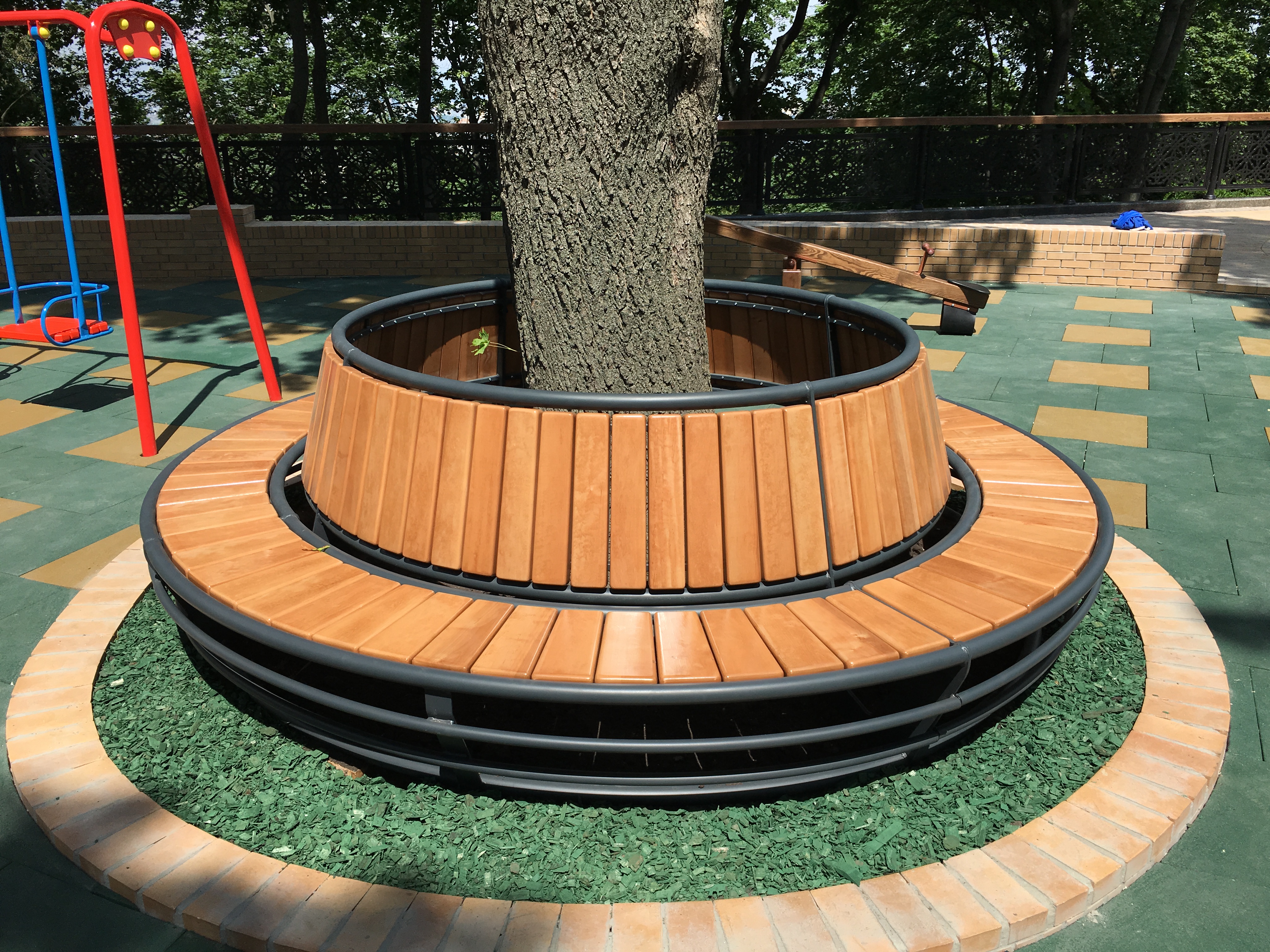 This ring bench draws attention by its somewhat unusual design. And at the same time it’s very useful for those who want to arrange some territory. The point is in its round form which helps to save space and offers enough space for those who wish to sit and take a break from walking. The reliability and durability of this ring furniture allow it to serve you for a long time.