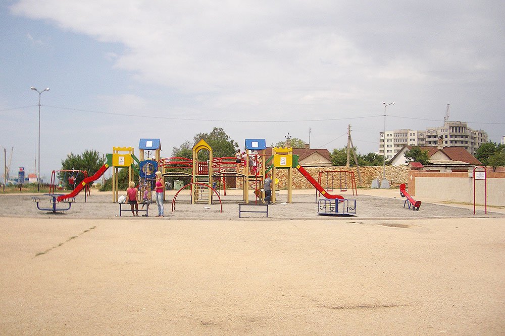 This playground looks like a kids’ dream for two reasons. The first one is the colourful appearance of the game complex. The second one is various stuff, which is very funny and sometimes challenging to play with. Among the last ones are obstacles and kids need all their balance and coordination to overcome them. So, children not only have a pleasant pastime, thanks to Citadel-1 Playground Complex Interatletika T911.1, but enhance their physical fitness as well.