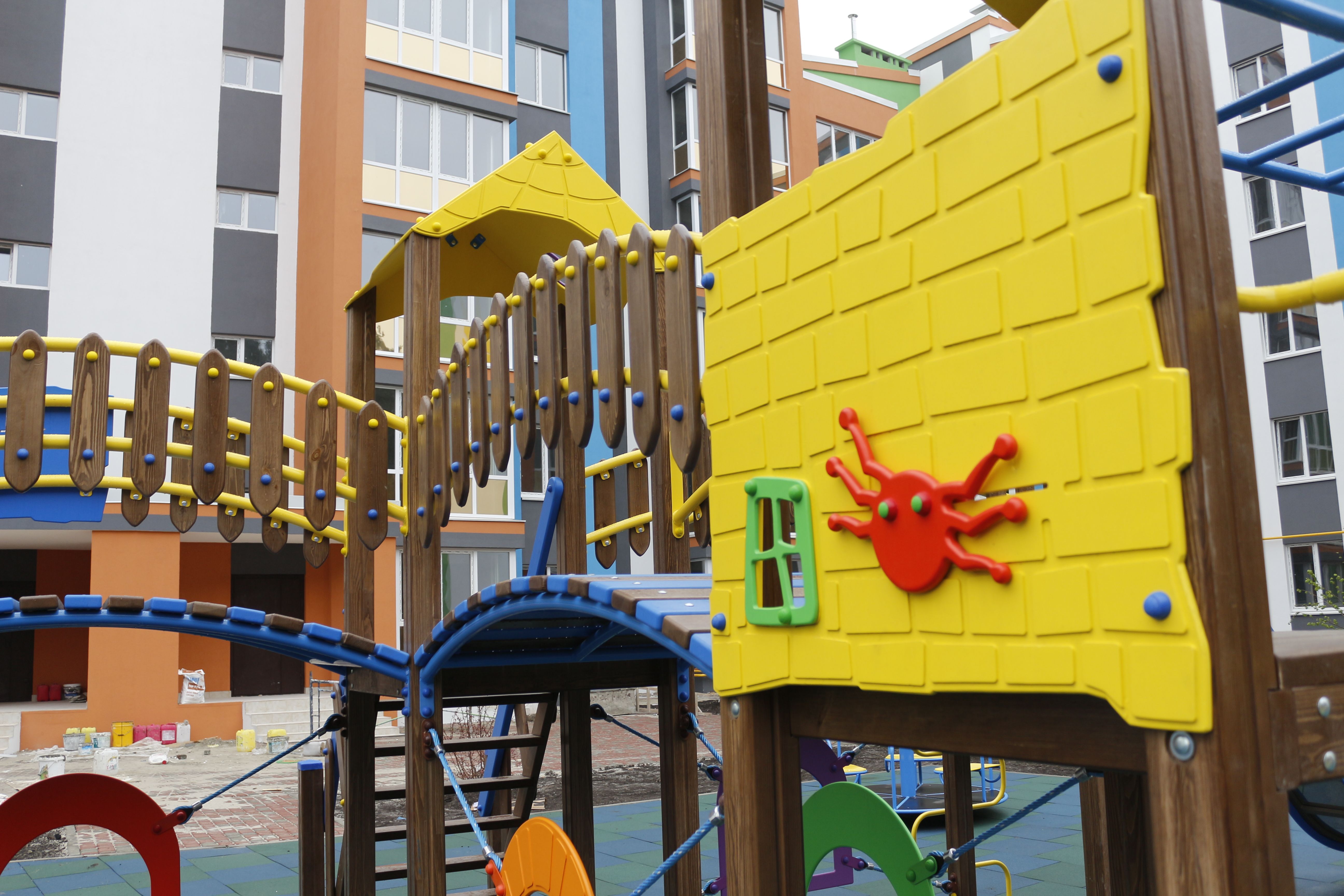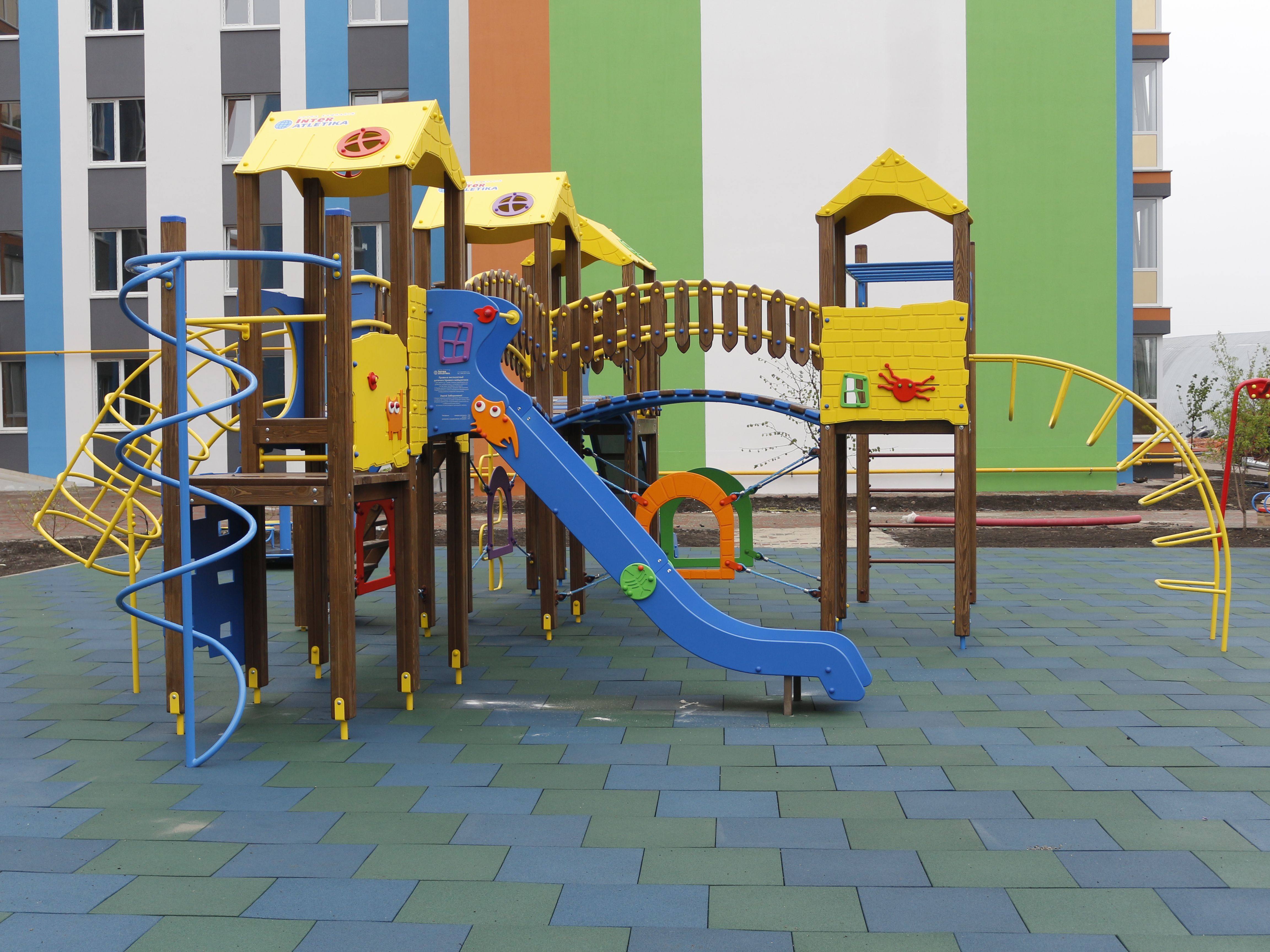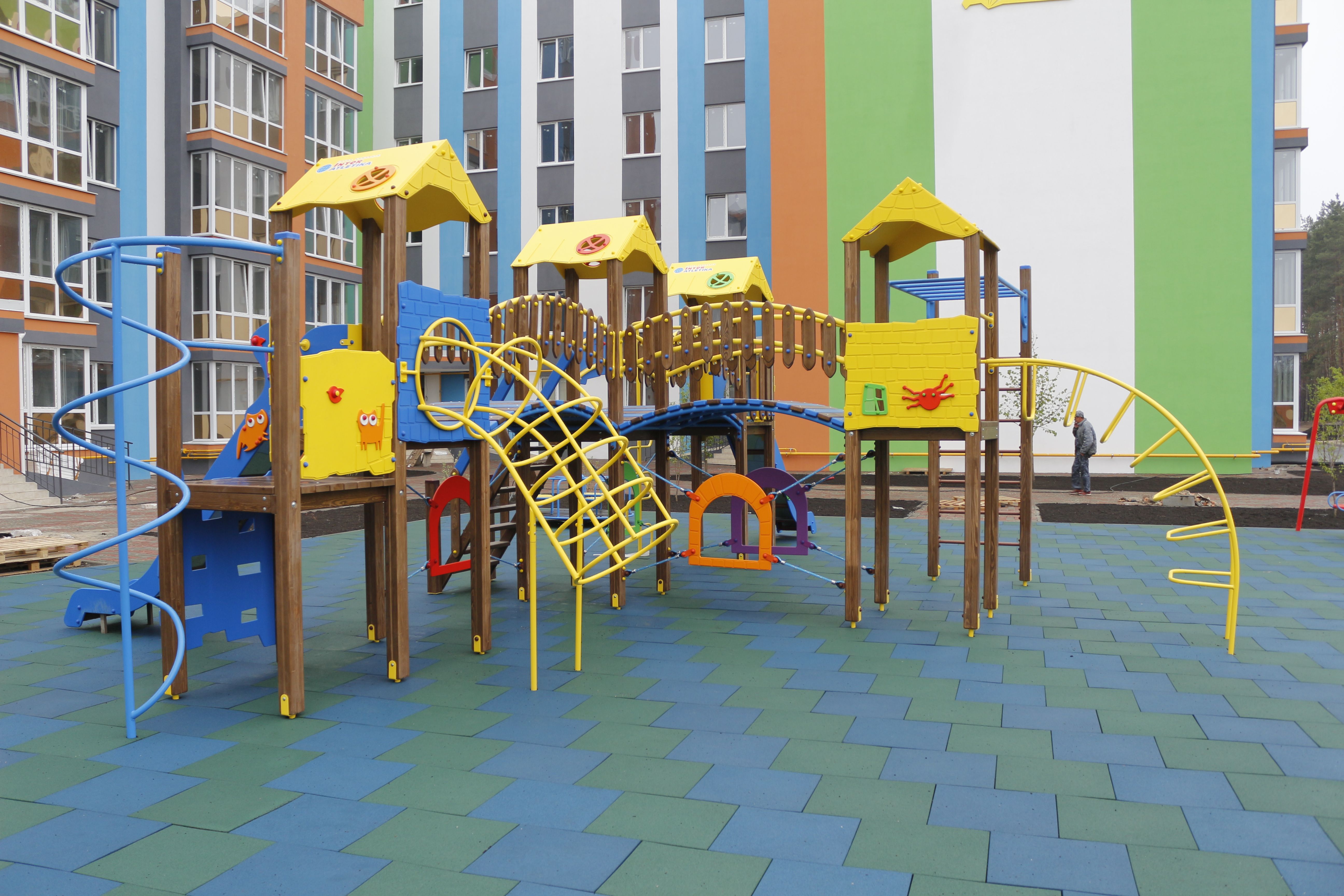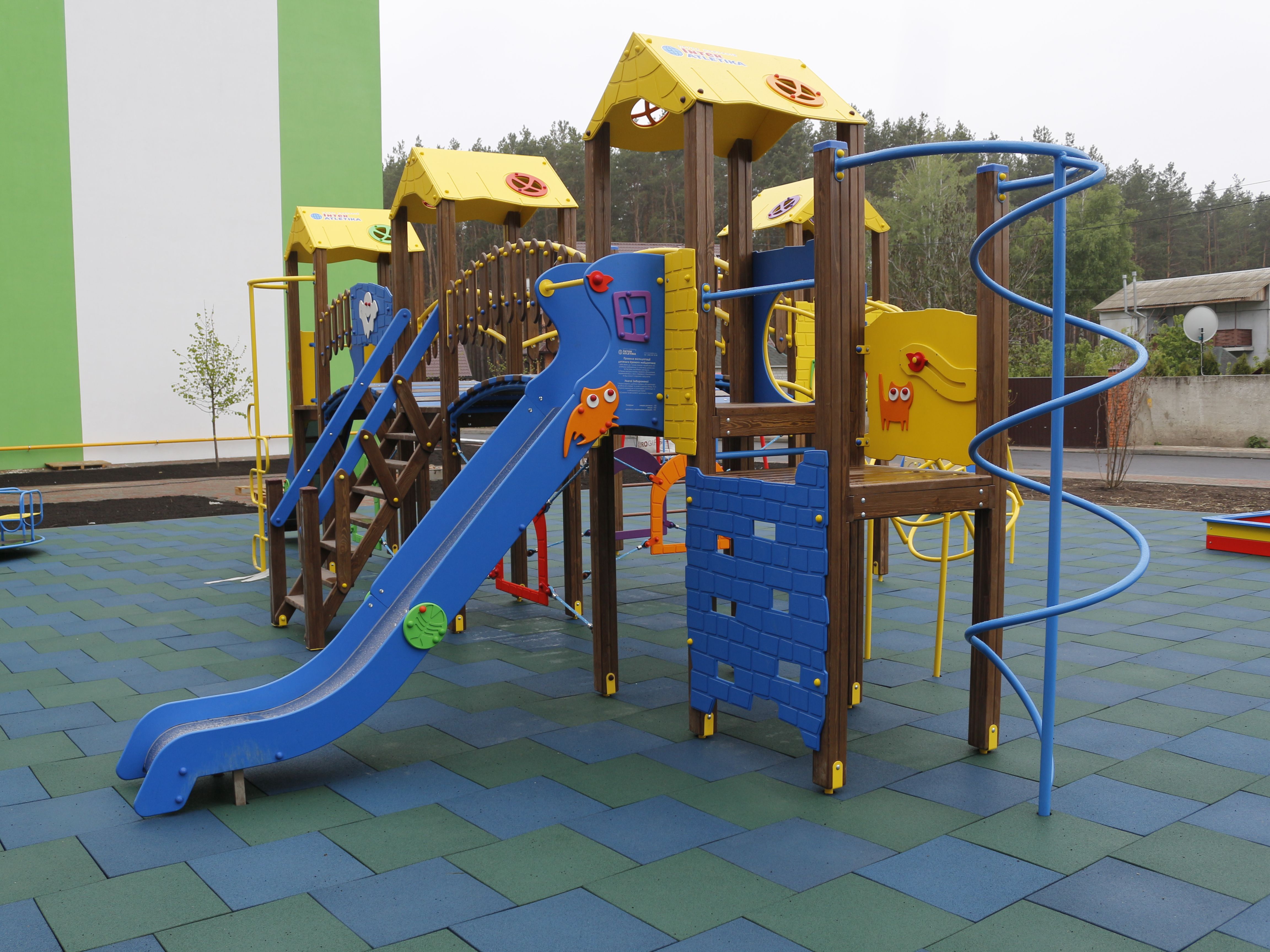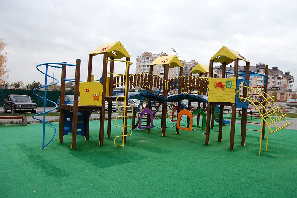 The game complex is a perfect solution to attract children to leave their computers and phones and go outdoors. It consists of four parts with a lot of different kid equipment, such as stairs, slides, and monkey bars. Besides having a lot of fun, children get physical development and improve their social skills, thanks to interactions with other kids.