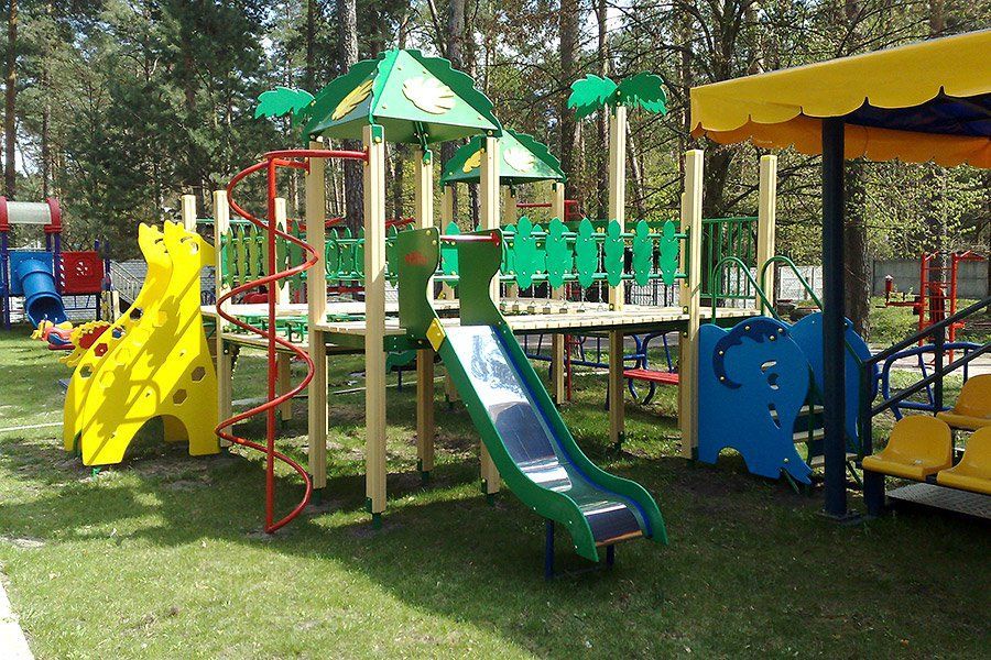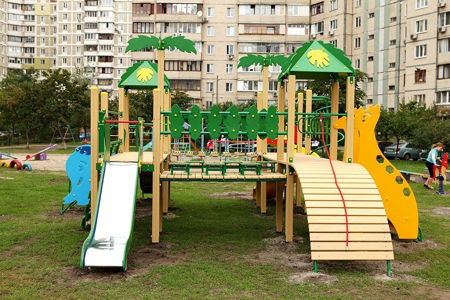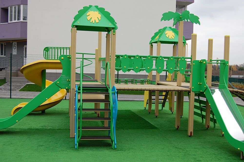 Children can imagine that they are in a real jungle, thanks to this playground. Such games improve their creativity and along with this, kids improve their physical shape. The jungle design helps children have a pastime outside, therefore they reduce their screen time.