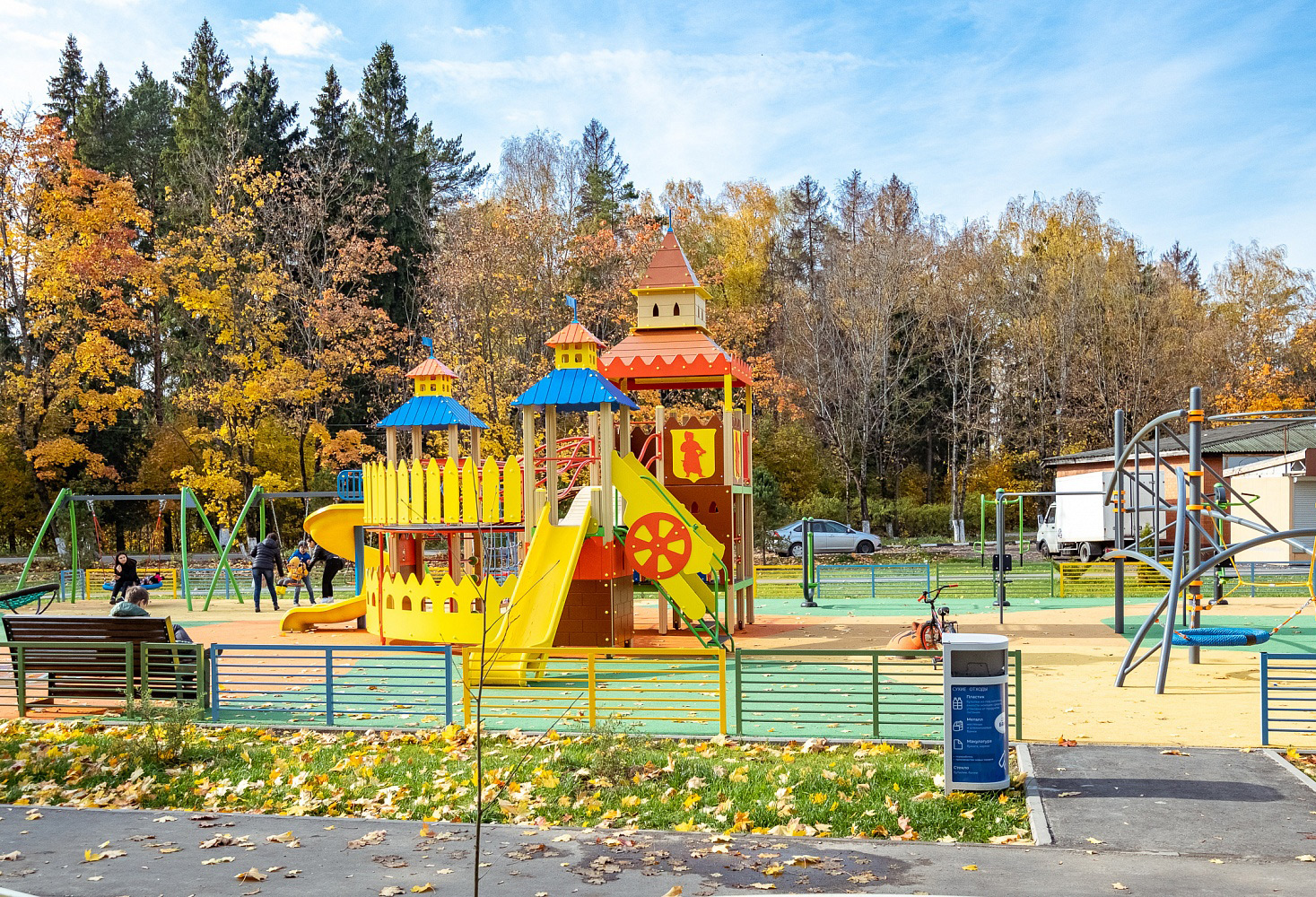 There are rings, a rope complex, three towers with transitions, a handrail, a hanging ladder, an abacus for the smallest, toy guns, and, of course, the two favourite slides - straight and curvy. It's comfortable for parents to take care of small children when everything is at hand, and it is possible to pick up the child from any corner.