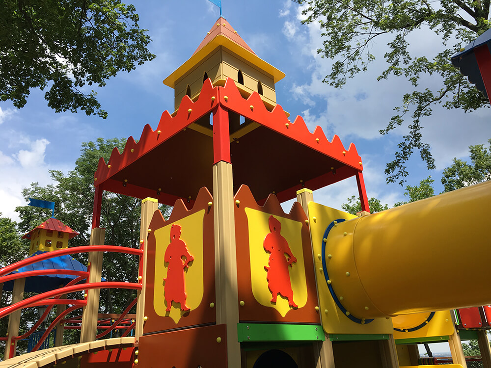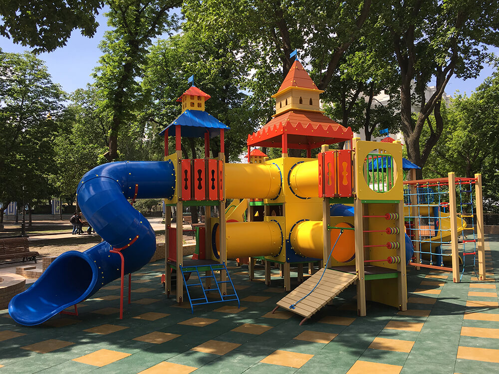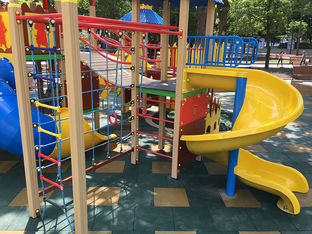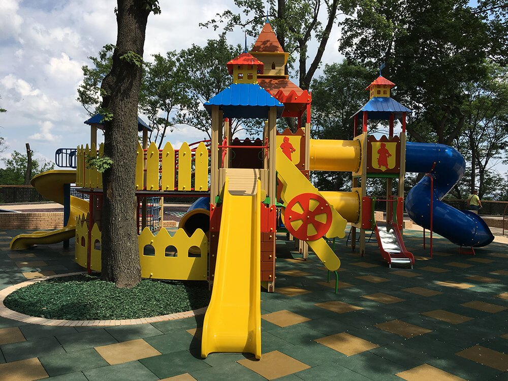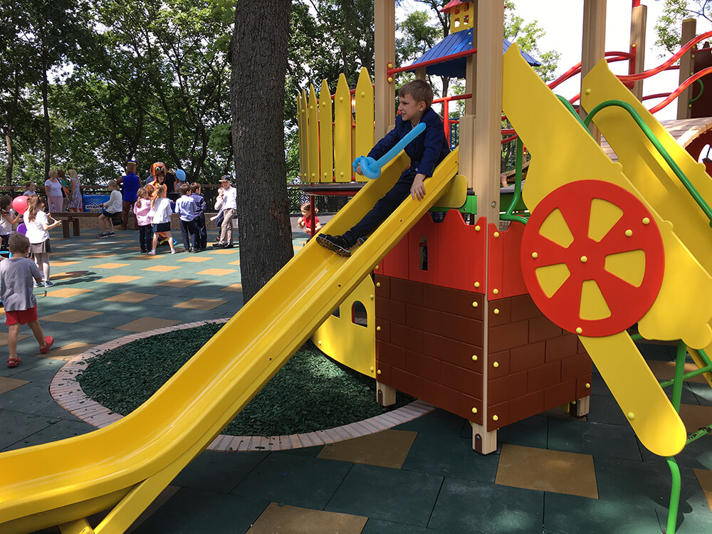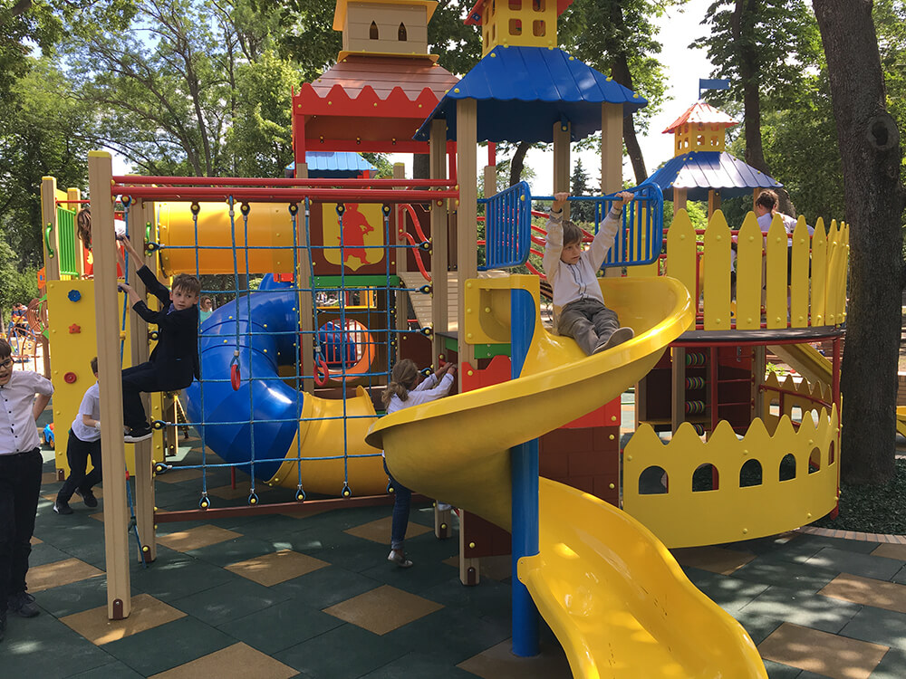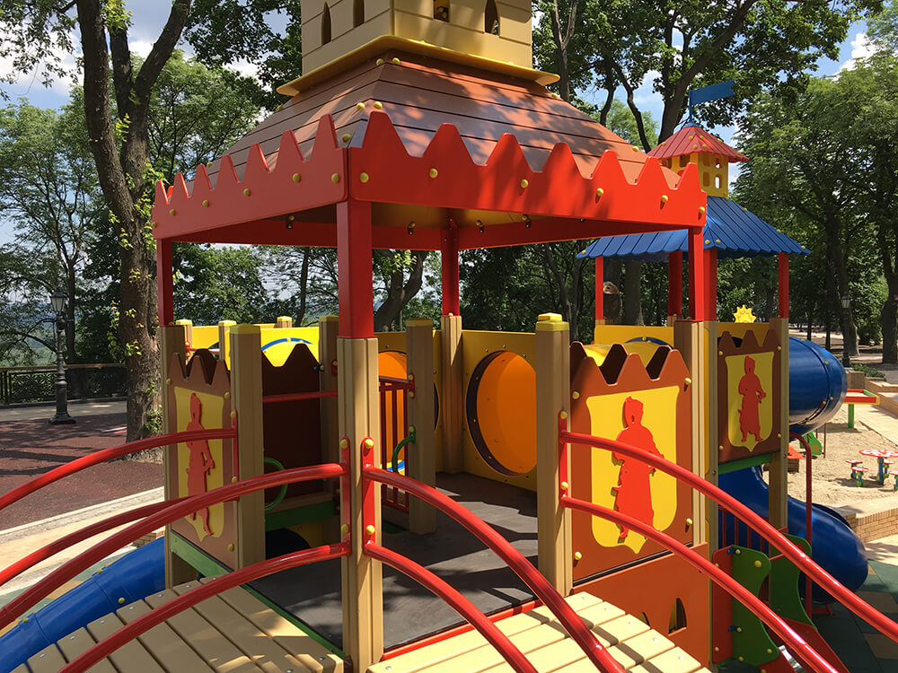 Khortytsia was an island inhabited by Cossacks. They were free-spirited people and didn't fear anybody. This playground was inspired by a Cossack fortress. There are a lot of places to run, climb, hang, and play active games, breathing the fresh air. It helps children to improve themselves physically, which is very important for their future lives.