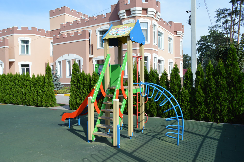 This child equipment is a set of platforms, to which different playground parts are connected. The platforms stand on racks, which are attached by bridges. Kiddy Playground Complex T801 motivates children to play outdoors, developing their physical abilities, coordination, and social skills.