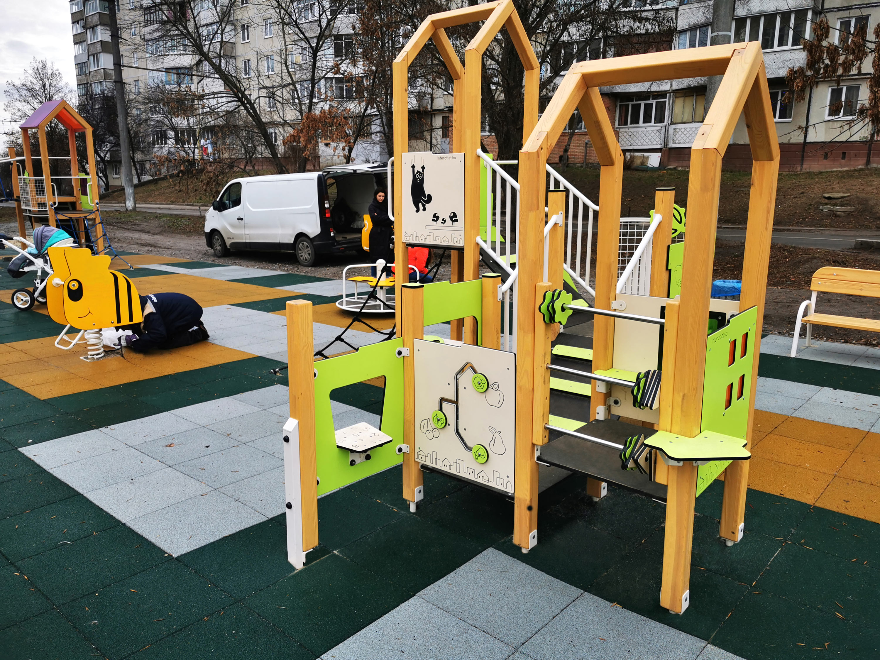 Mini City Playground Complex Interatletika LK101 is a true small town, where different children find their activity, which they prefer. Some can play puzzles, others try to climb a rope, and others may just carelessly go down a slide. Whatever game they choose, their parents can be sure that kids find it interesting for a long time. Therefore, they won't beg their parents to go home after half an hour of a stroll.