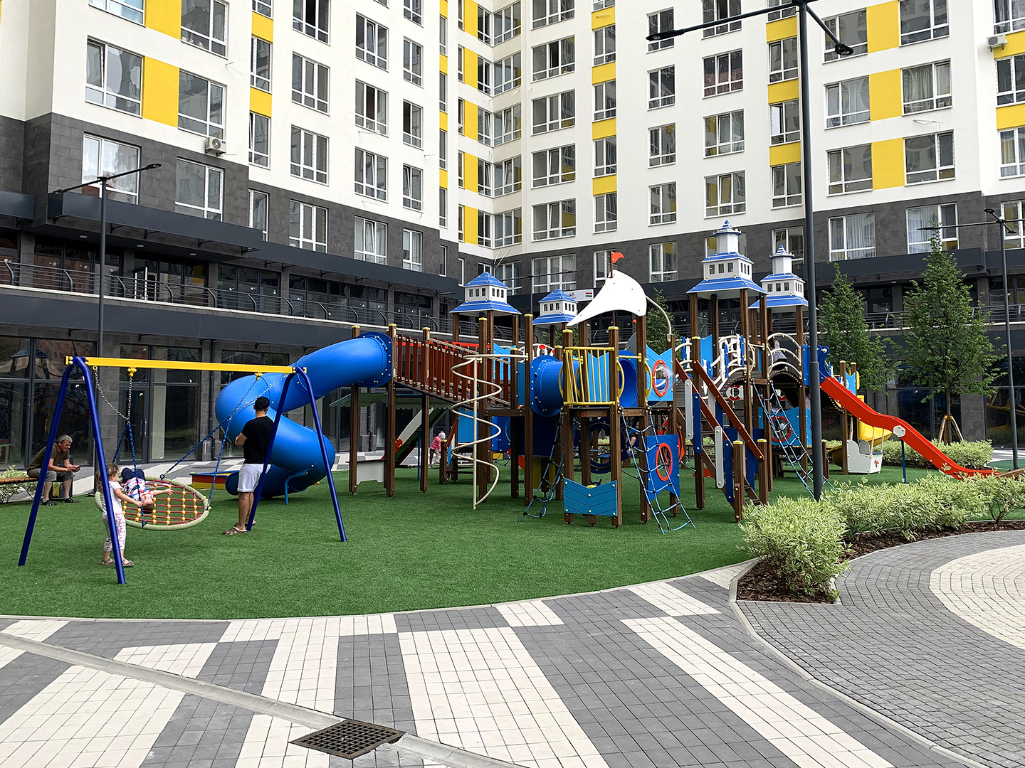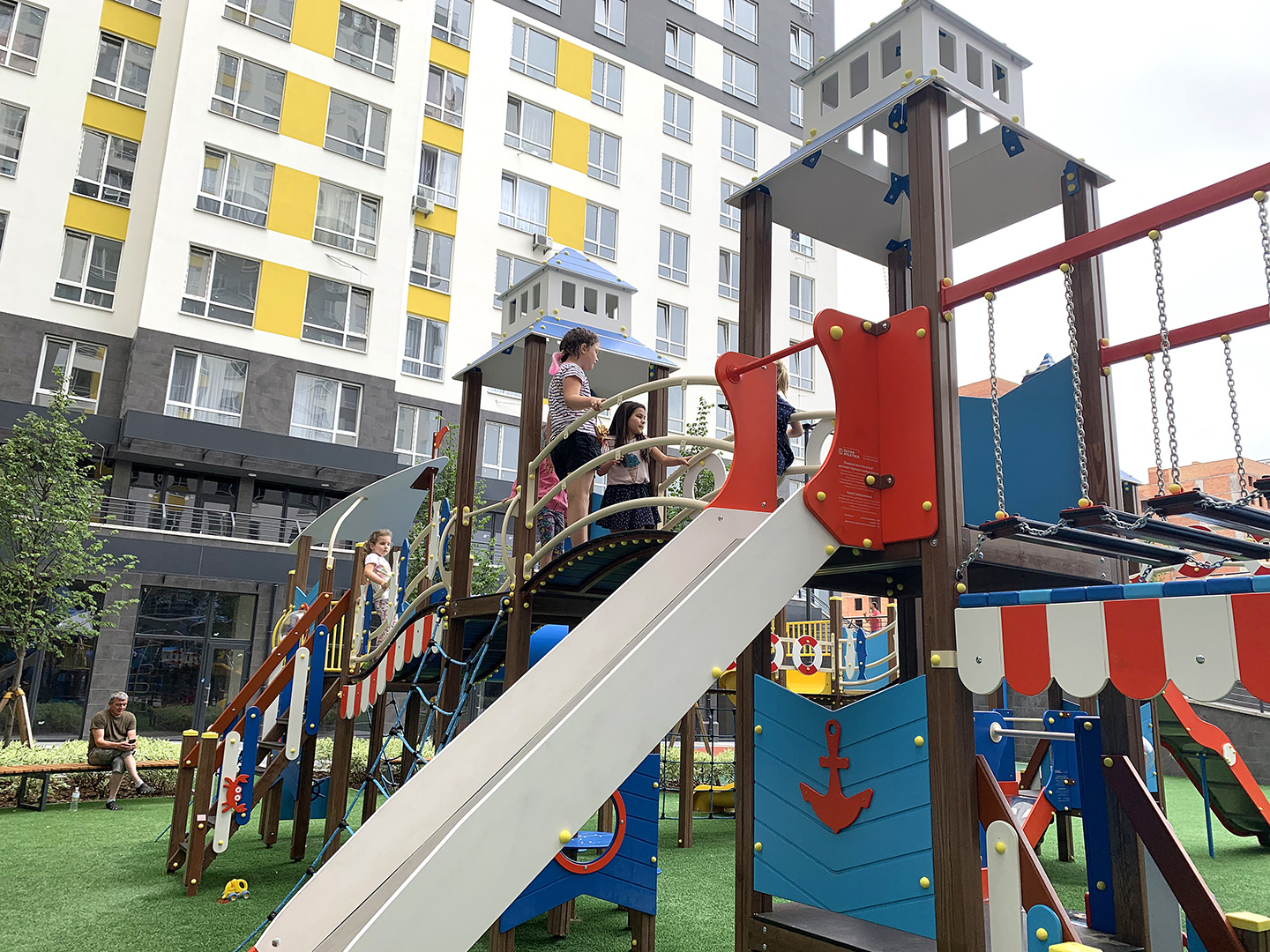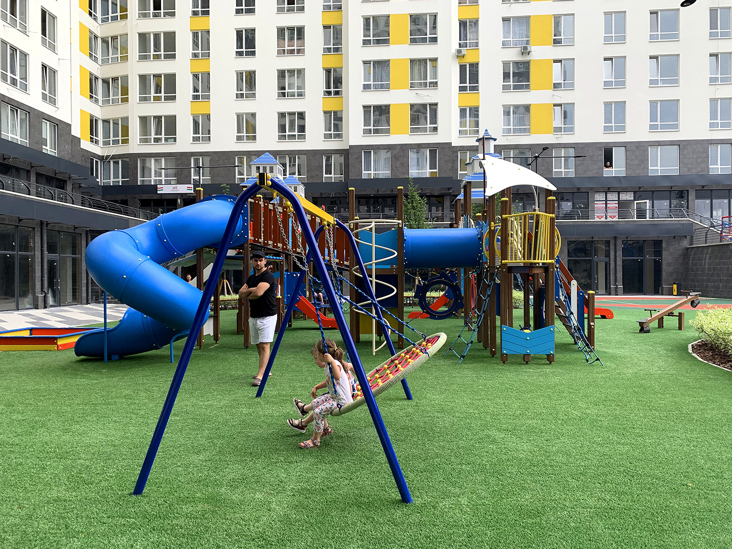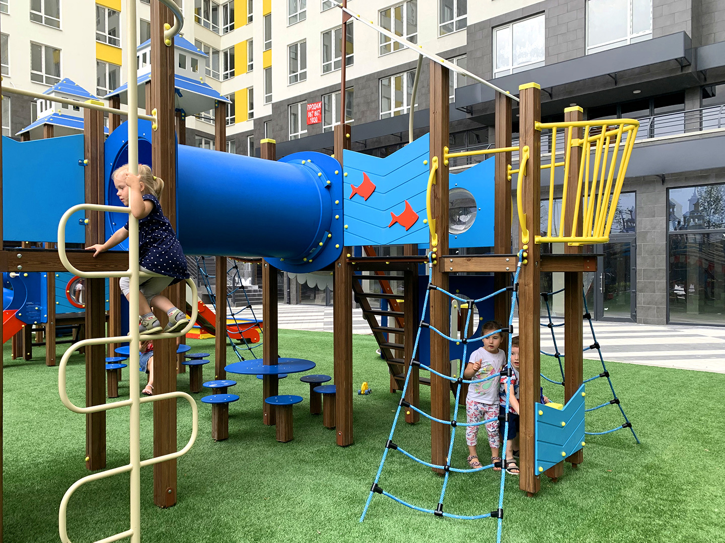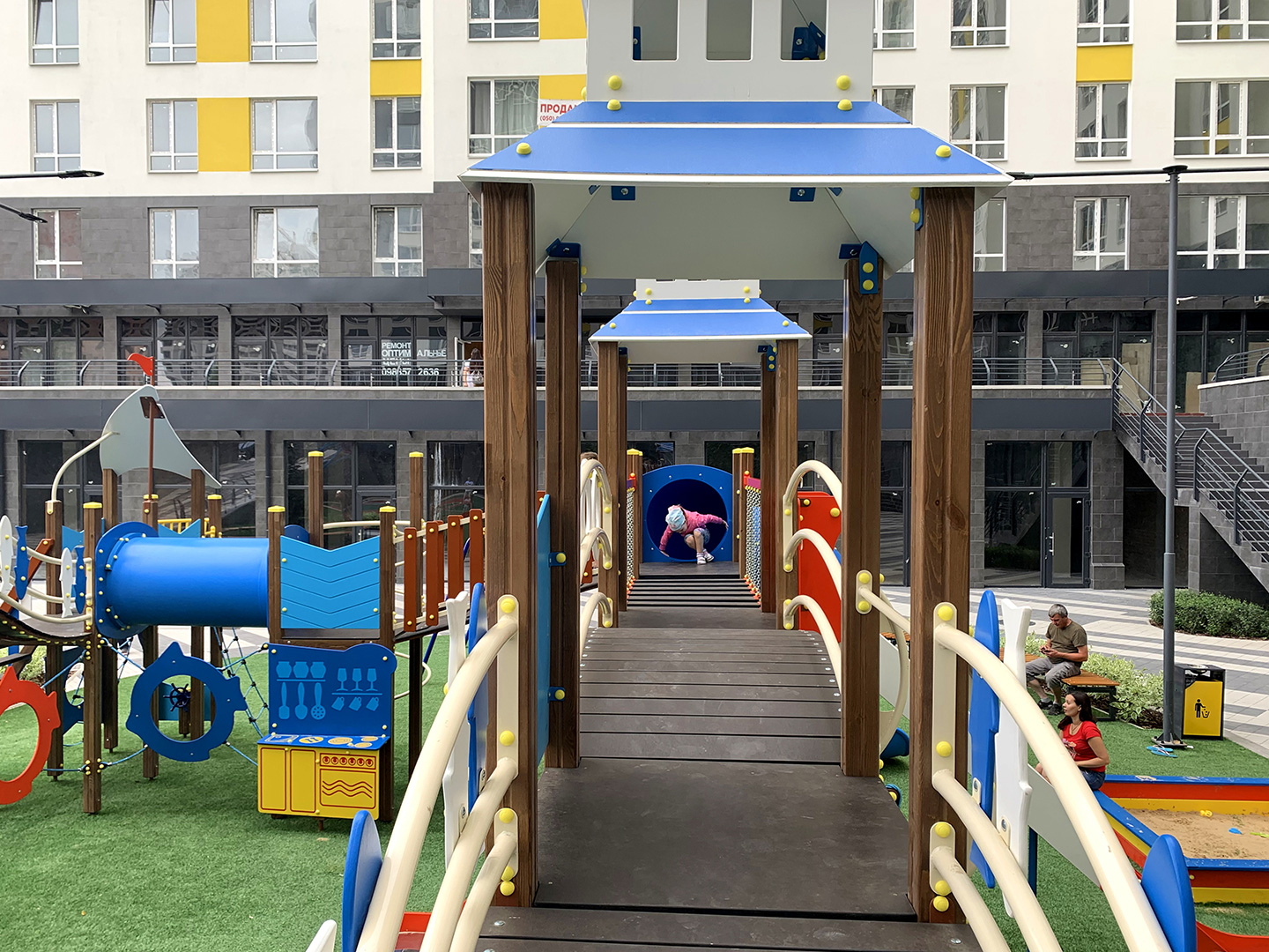 The parts do not contain sharp corners, which means that the child is not injured. Elements are covered with powder paint, which is safe for health. The coating protects the structure from burnout, mechanical damage, corrosion, and adverse weather conditions.