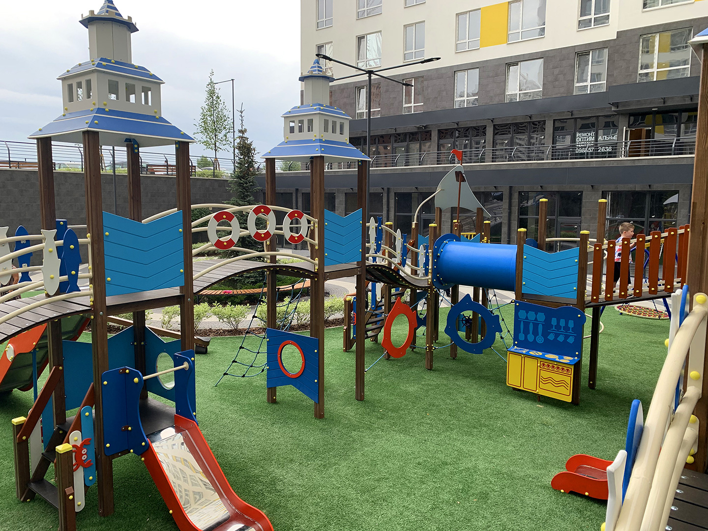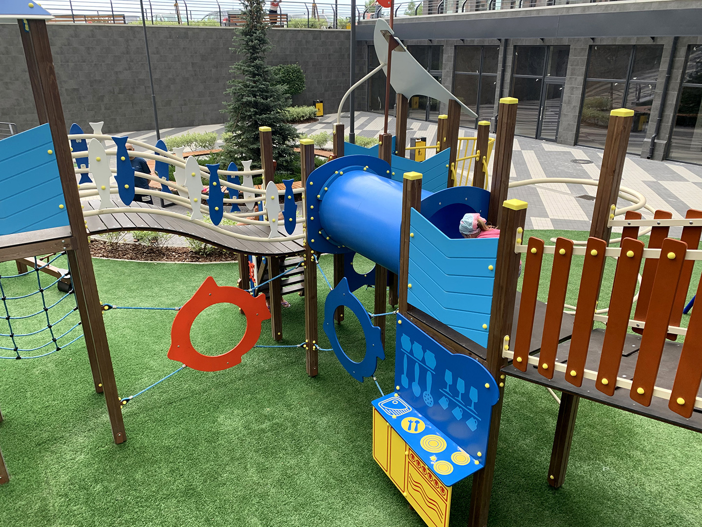 Children love to explore and discover something new and interesting for themselves. This huge game complex will satisfy any restless child. The fabulous design and pleasant colours draw the attention of children and help parents motivate their kids to spend time outdoors. Games in River station Playground Complex Interatletika T920 give little travellers only bright impressions. Active outdoor games not only give positive emotions but also strengthen immunity, develop coordination, and flexibility.