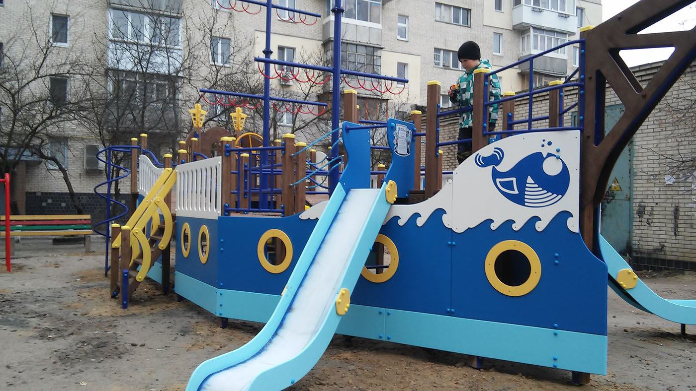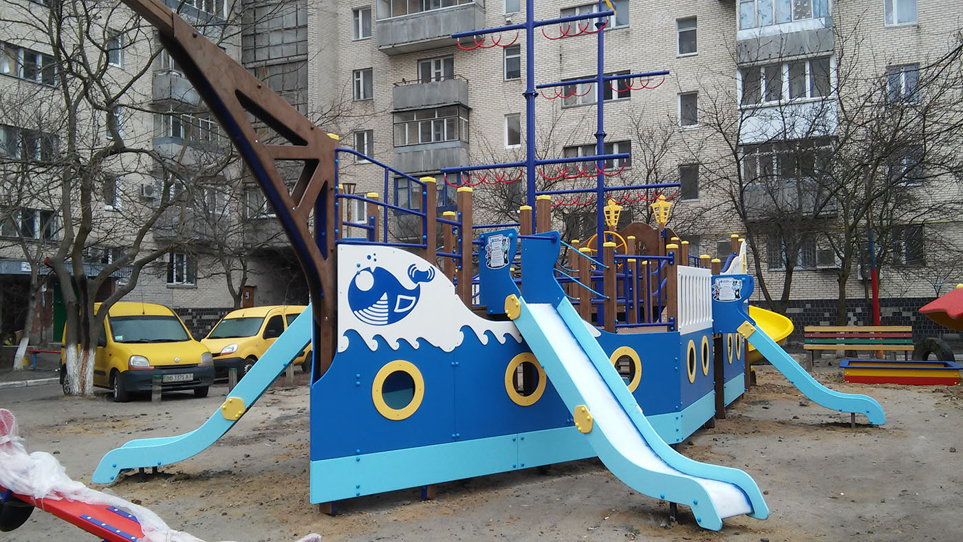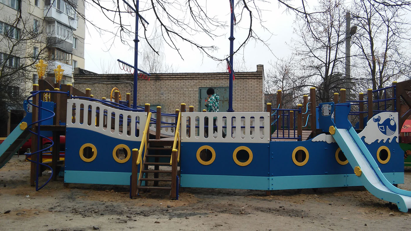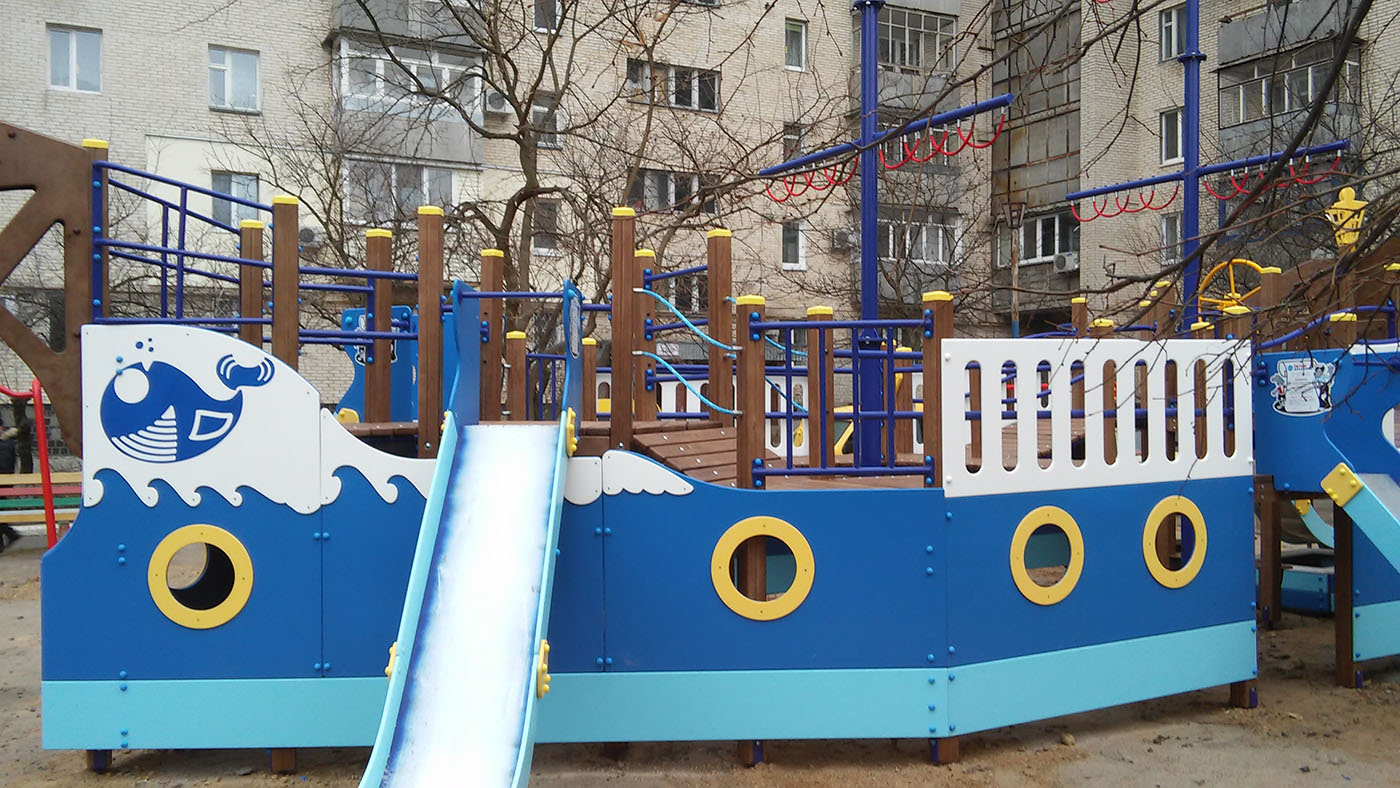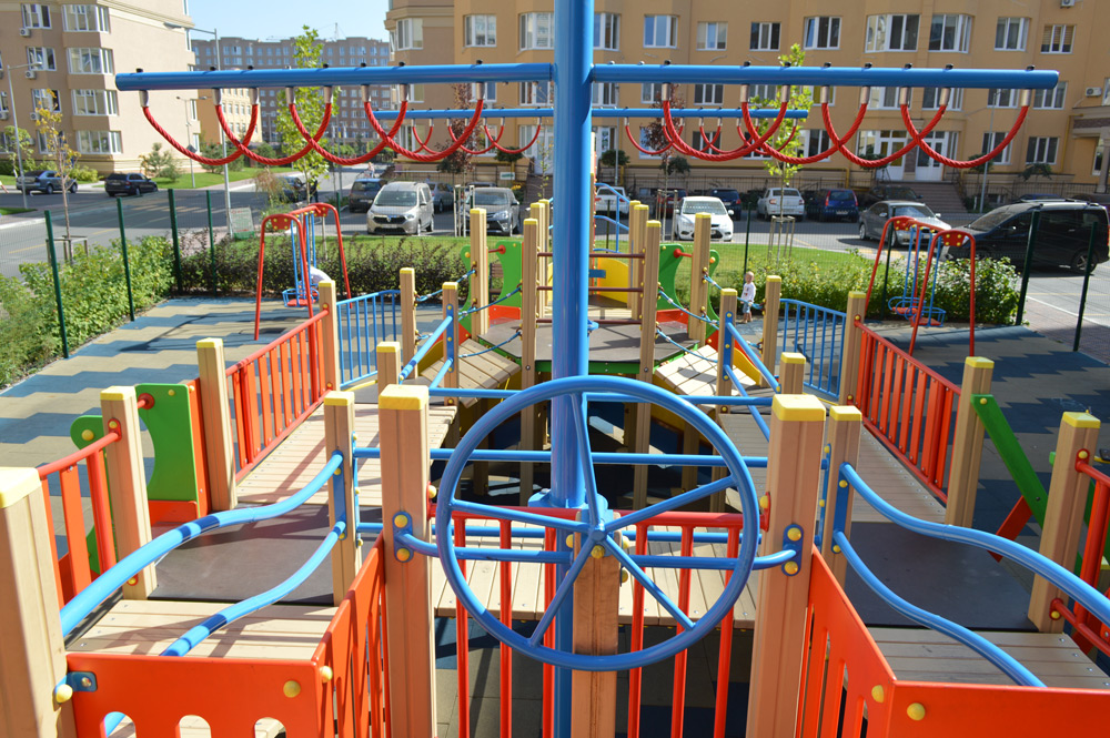 Ship Playground Complex Interatletika T915 helps children imagine that they are on a real ship with sails and a rudder. It’s equipped with different play elements and has a lot of free space for kids to run. This game element gives them the possibility to improve their fantasy and enhance social and physical state in the fresh air.