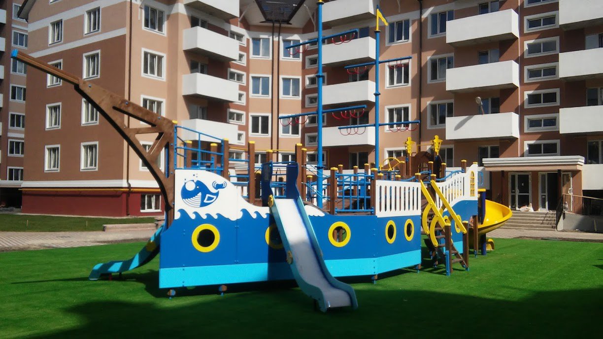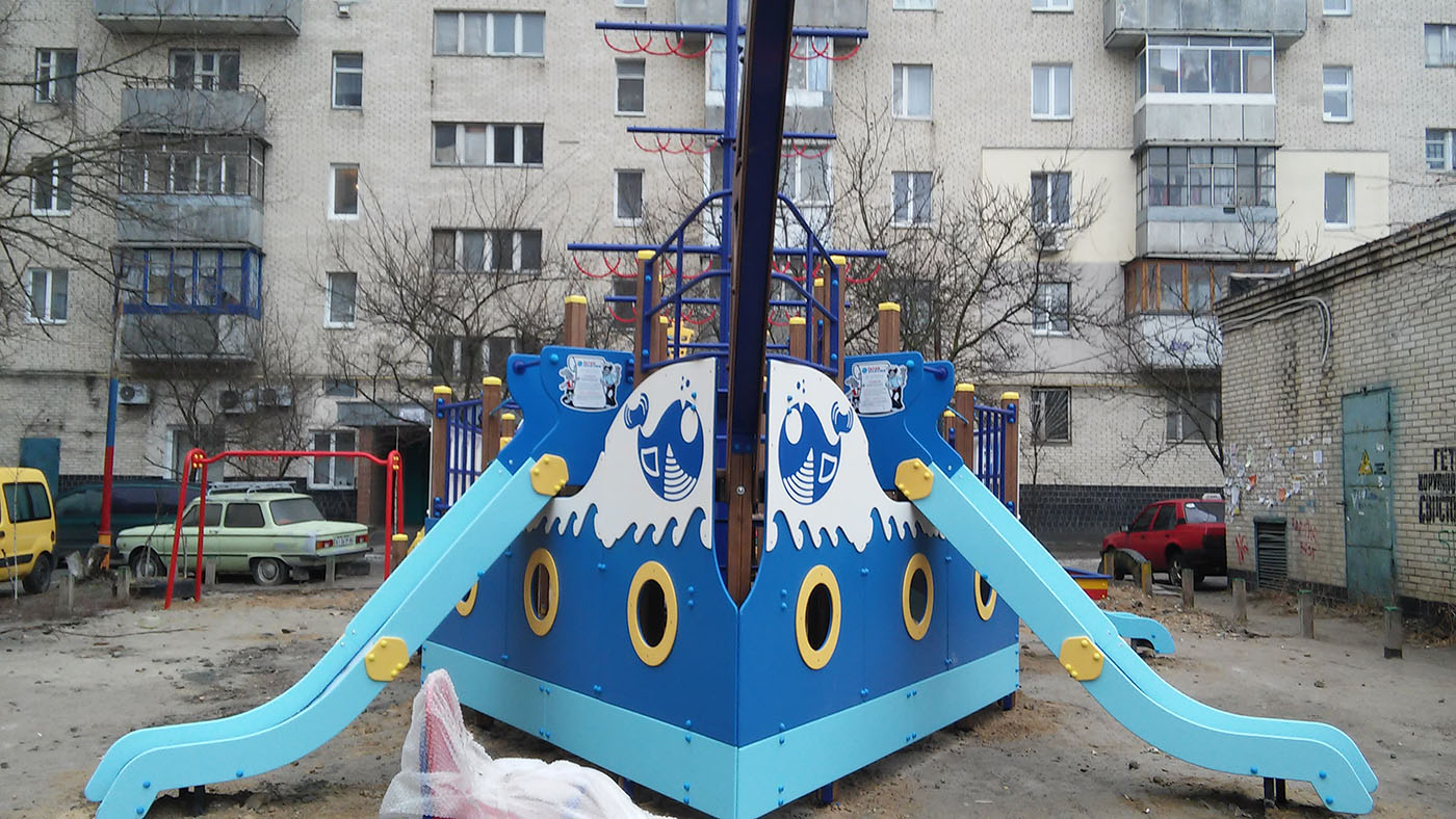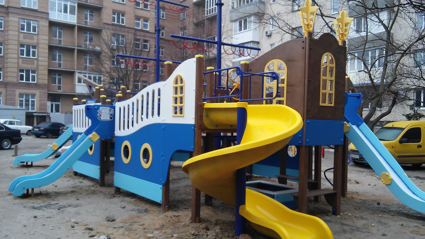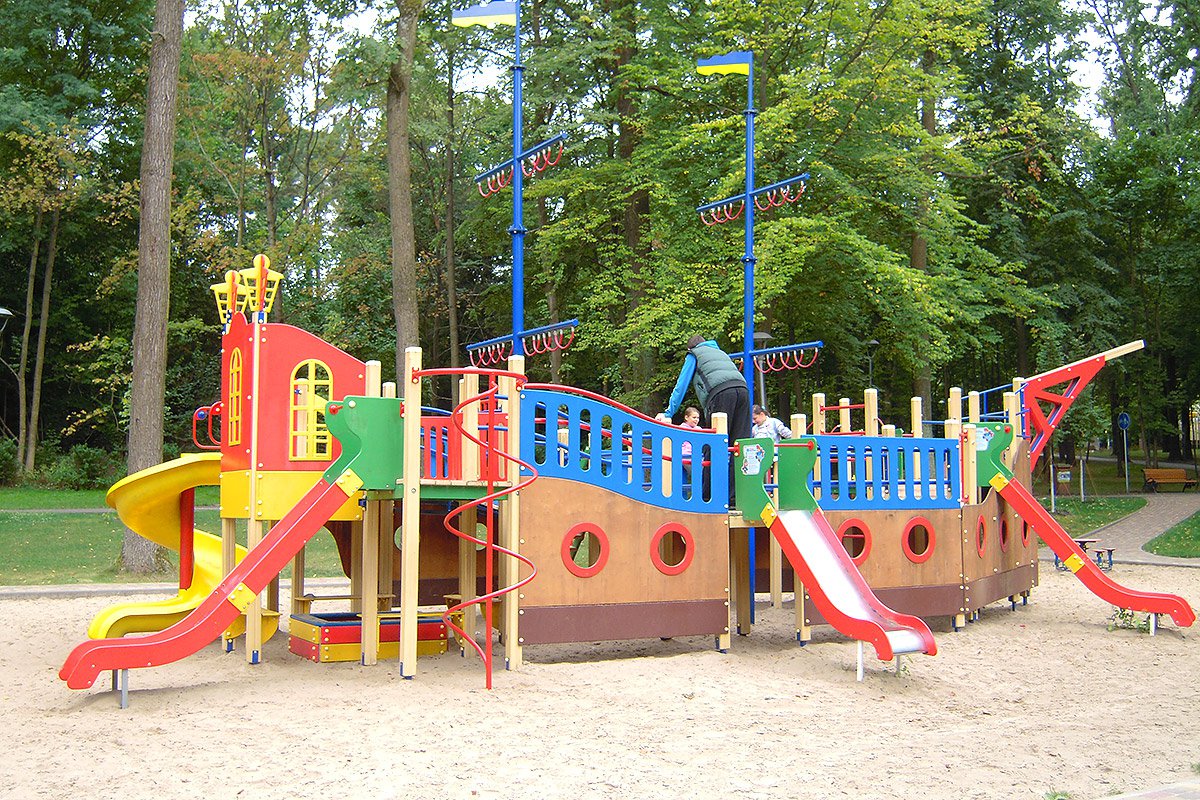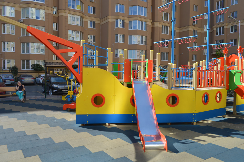 Ship Playground Complex Interatletika T915 helps children imagine that they are on a real ship with sails and a rudder. It’s equipped with different play elements and has a lot of free space for kids to run. This game element gives them the possibility to improve their fantasy and enhance social and physical state in the fresh air.