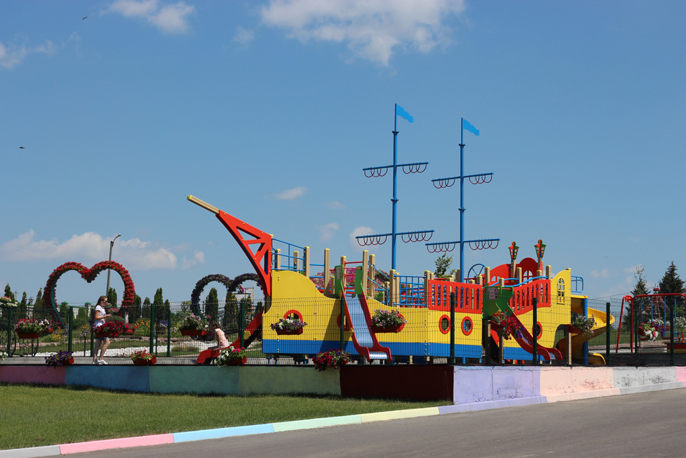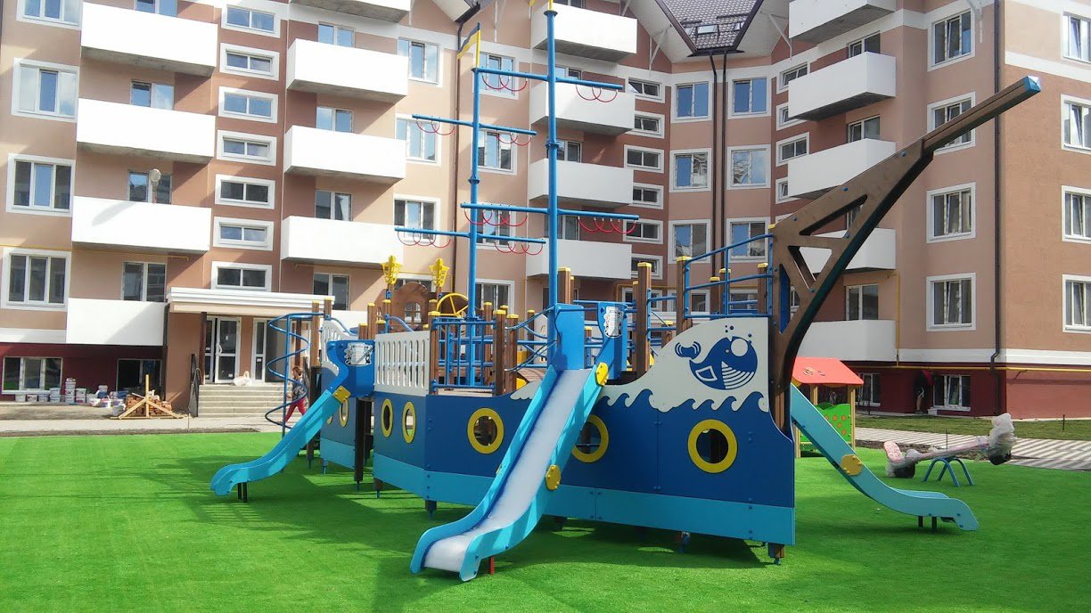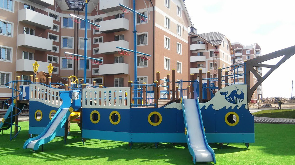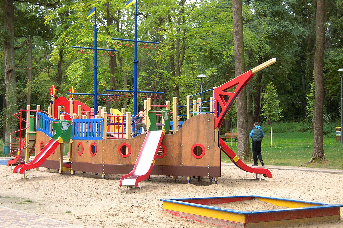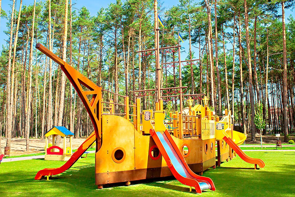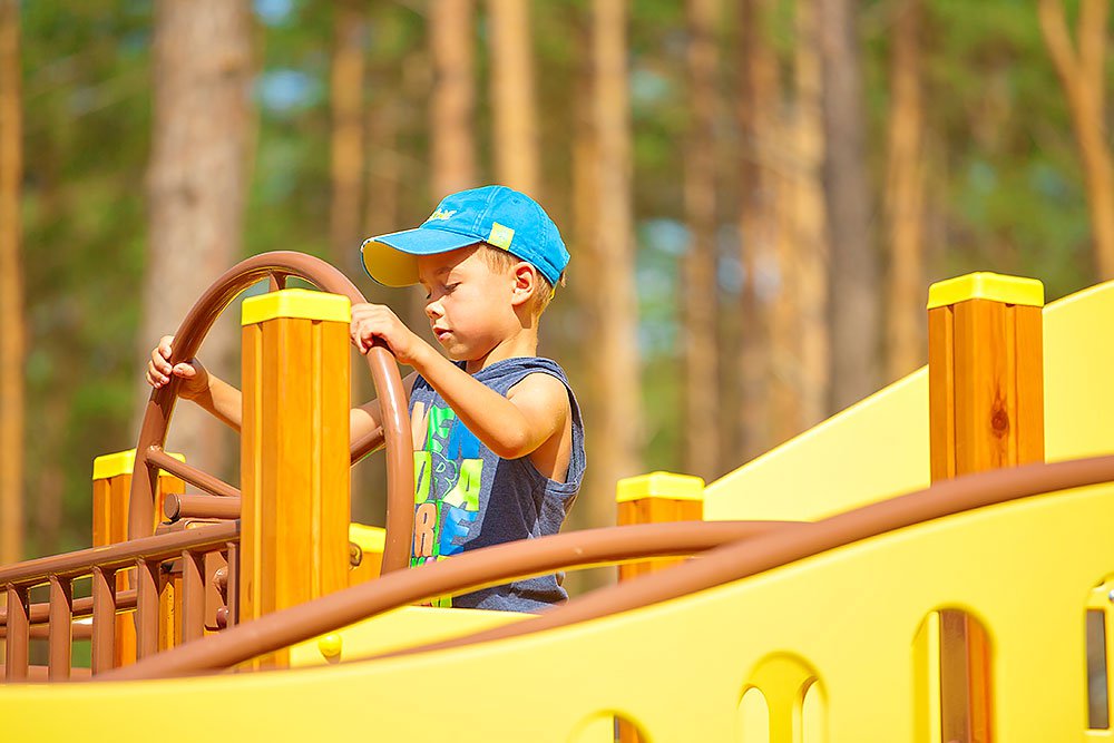 Ship Playground Complex Interatletika T915 helps children imagine that they are on a real ship with sails and a rudder. It’s equipped with different play elements and has a lot of free space for kids to run. This game element gives them the possibility to improve their fantasy and enhance social and physical state in the fresh air.