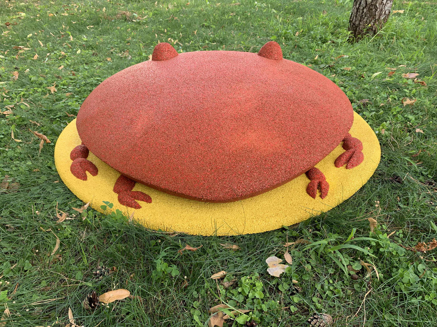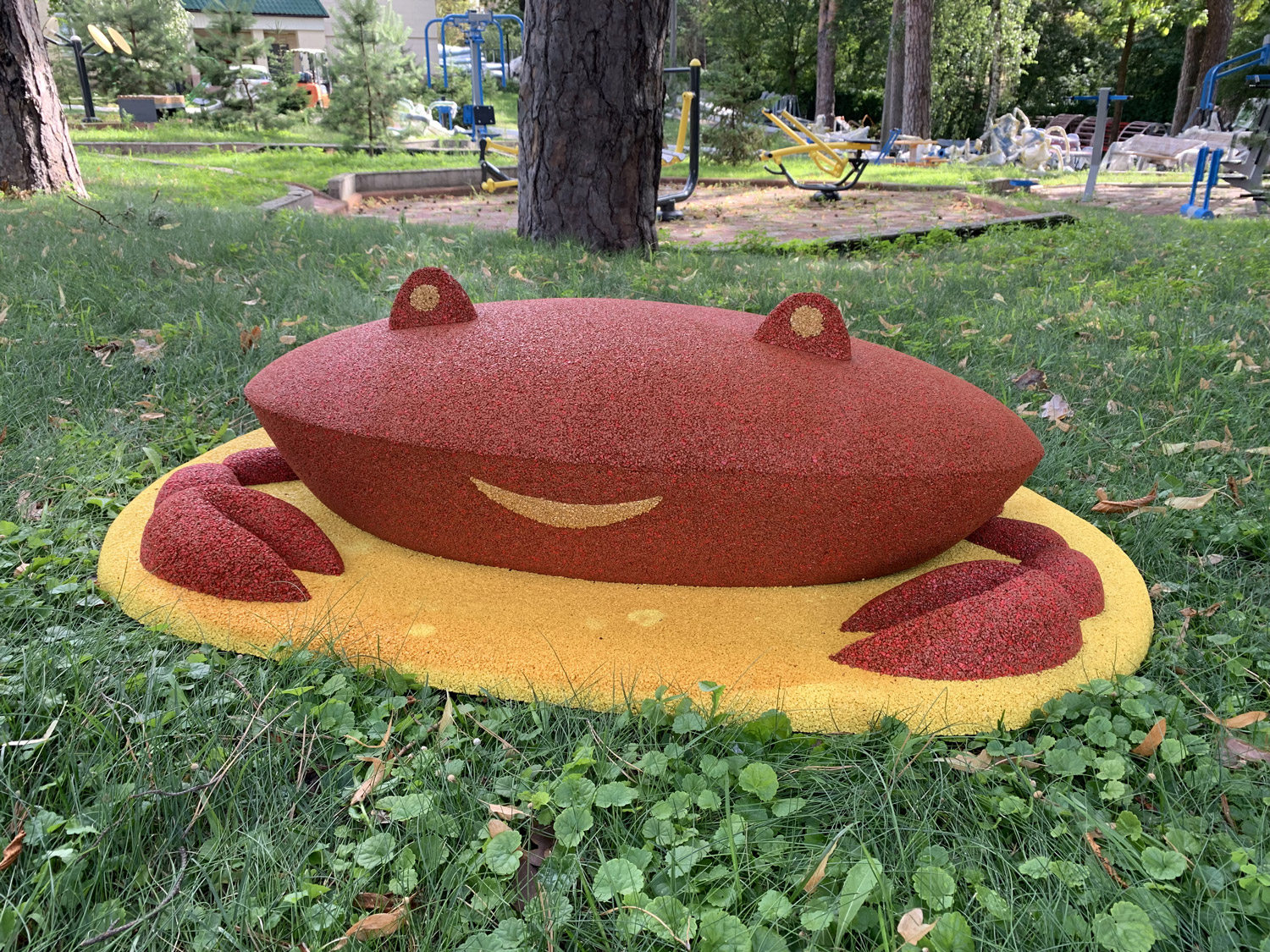 The product is made of a coloured rubber crumb with polyurethane glue. You can choose any bright colours according to the RAL palette, which doesn’t burn out. It doesn’t crumble, has a rough texture, and is pleasant to the touch. It’s strong, wear-resistant, retains heat, and has an optimal anti-corrosion surface. The figure doesn’t cause injury and isn’t hard.