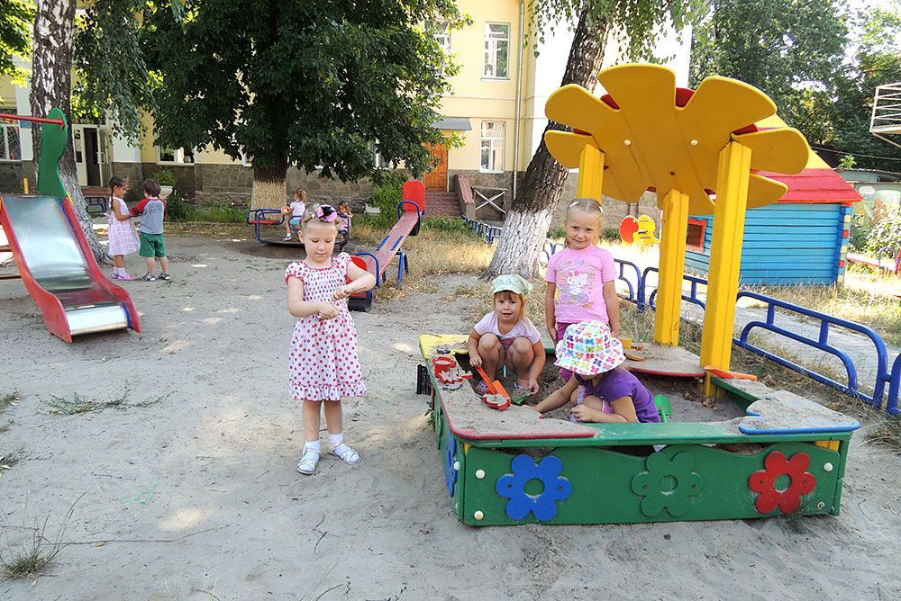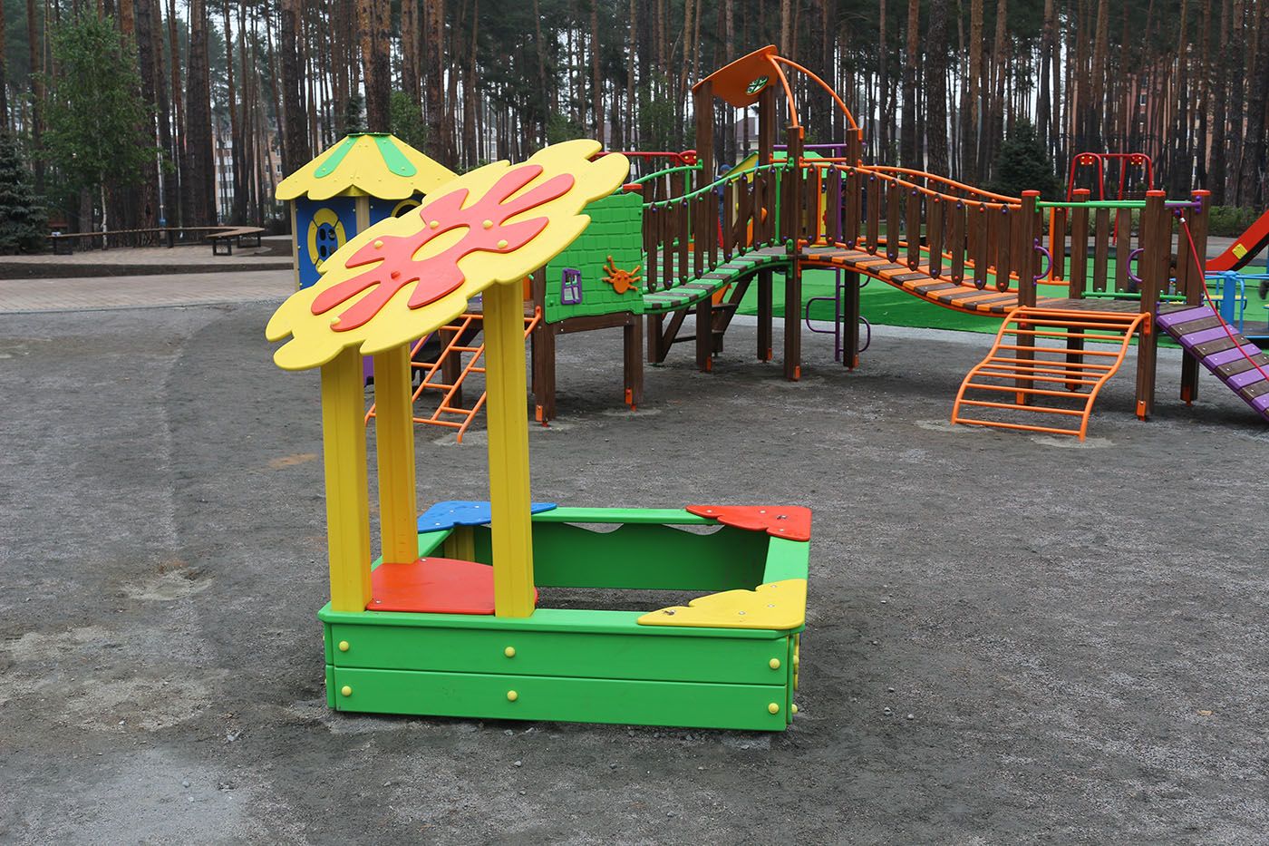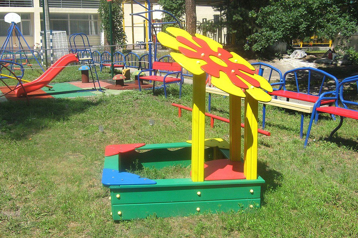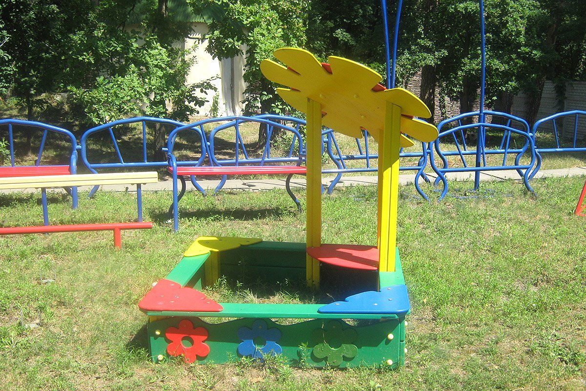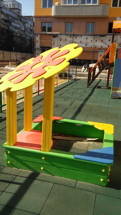 This sandbox has an appealing and cute design decorated with a flower, which definitely attracts children to play here. The playability of this game element is limited only by the imagination of kids, and they joyfully spend a lot of time here. It greatly simplifies the task for parents to make children go outdoors.