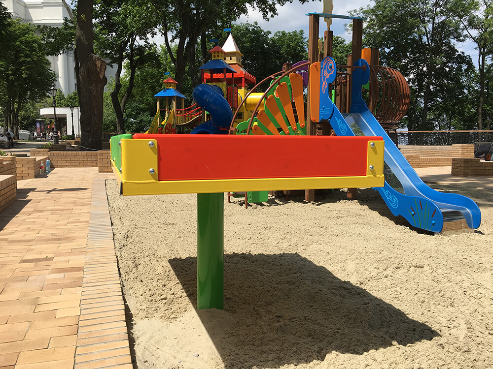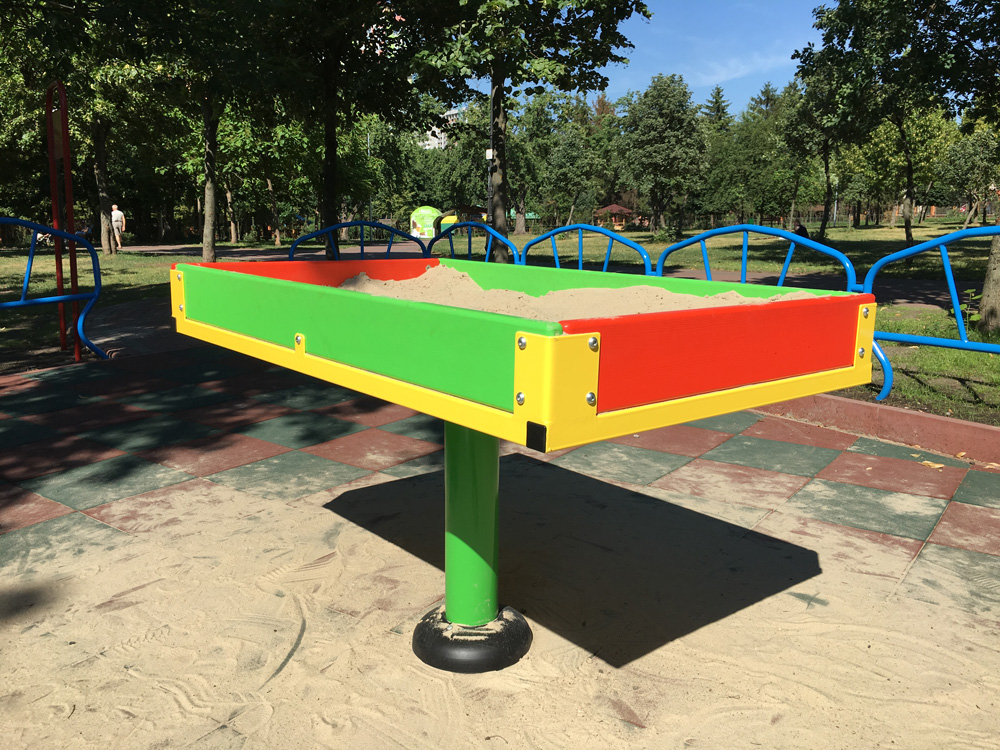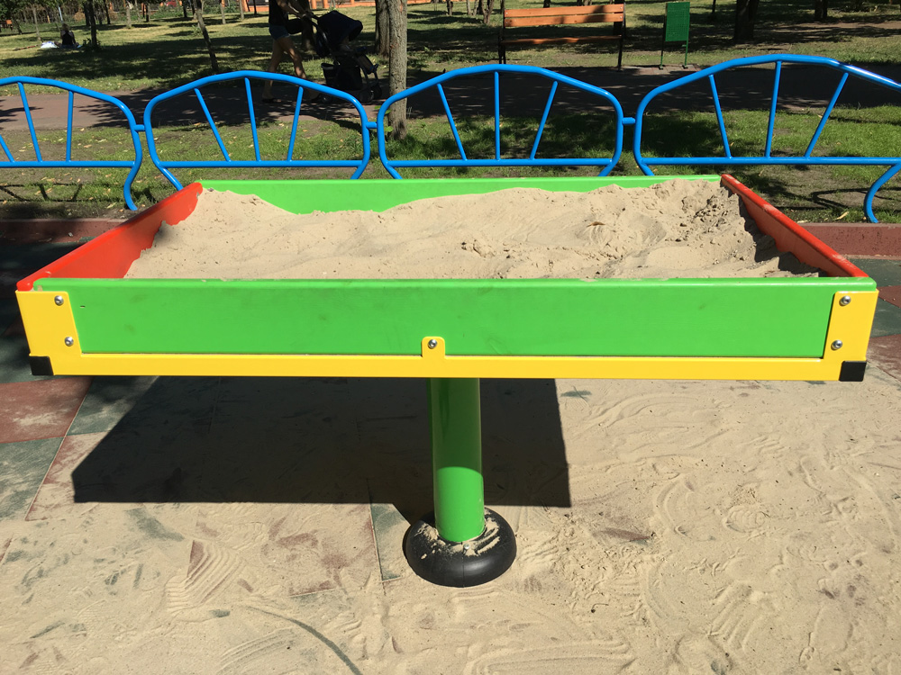 Playing outdoors is a pleasure. But kids with special physical needs require special appropriate conditions in playgrounds. A sandbox is always one of the key elements of the playground, so it’s needed to make this game equipment as comfortable as possible. Sandbox for children with disabilities Interatletika T604 fully meets all these requirements and provides a very pleasurable pastime for children with disabilities. Moreover, the colourful product will complement the exterior of a playground, school, preschool, yard area, park, or private yard.