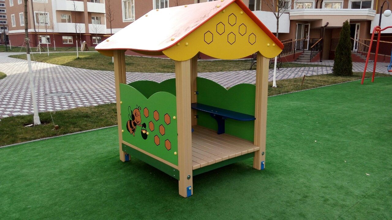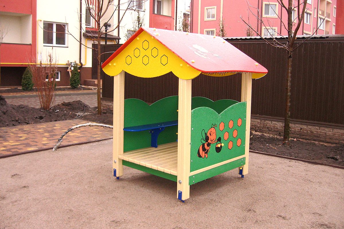 This elegant and cute gazebo will become your child's favourite place to spend a lot of time here. It is a perfect choice for installing in your yard, on playgrounds, in kindergartens, or in schools. The construction is a great place for children to relax, play, and interact with other kids. The appearance of Bee Shelter Interatletika TE305 is very attractive for children, thanks to the delightful design and images of funny bees.