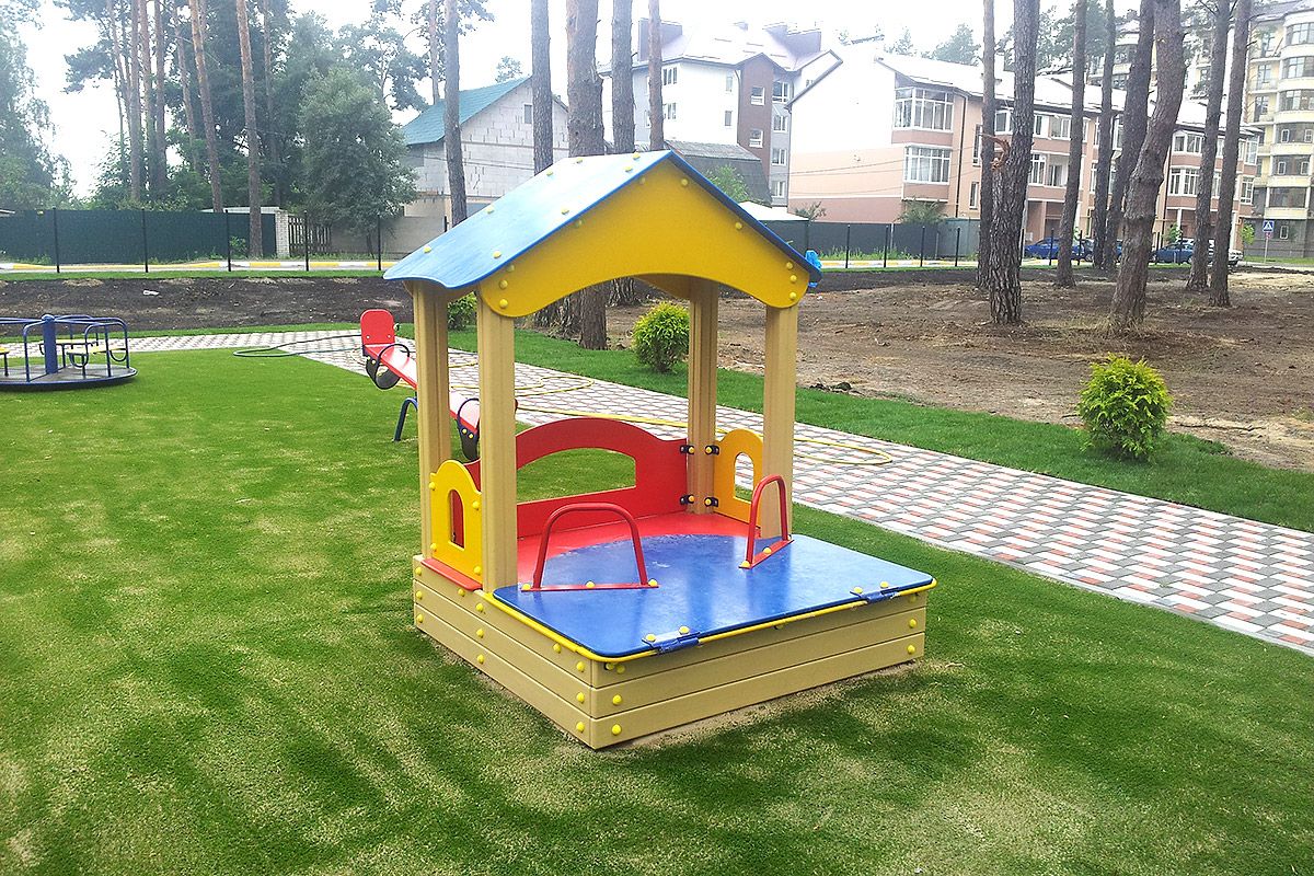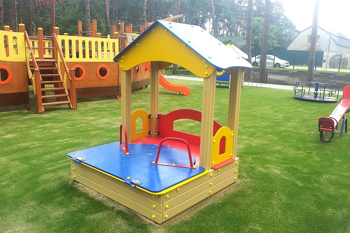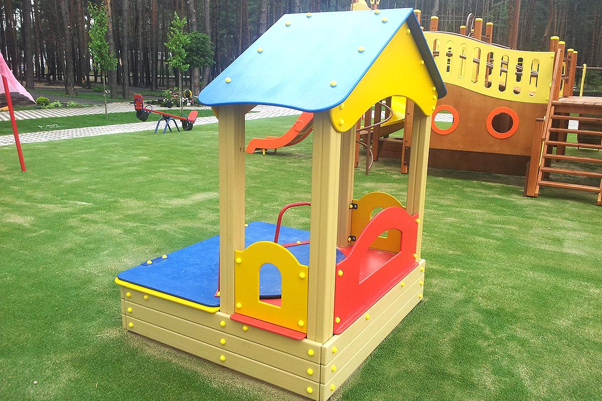 Such kid structure is a very important attribute of playgrounds. Children love to spend time outdoors in them because it is not only useful but also educational. Shelter with a Sandbox Interatletika TE320 is intended for kids’ active recreation and protection of children from rain or sun. It plays not only a decorative role on the playground but also serves as an excellent place for outdoor games. A sandbox has a cover, which in turn, protects the sand from rain, leaves, and other external factors. The cover is made of moisture-resistant plywood.