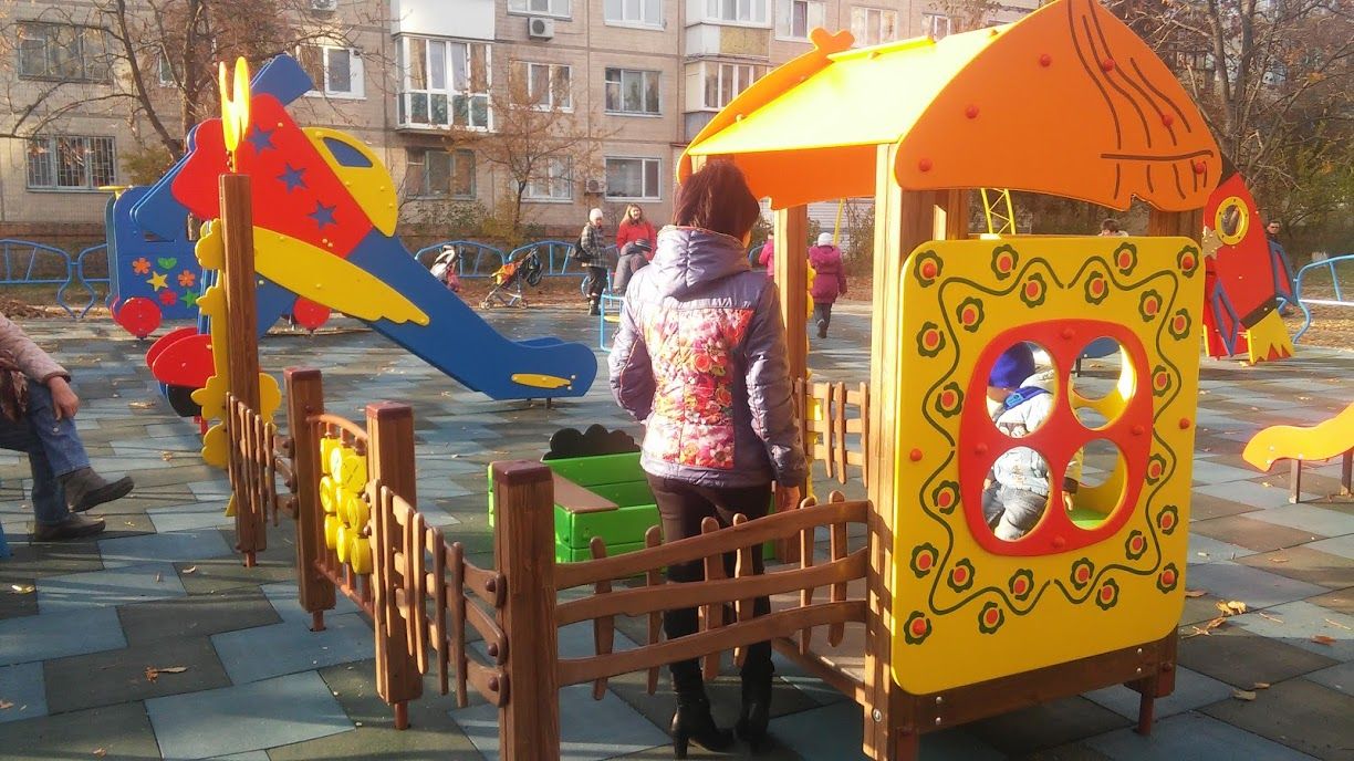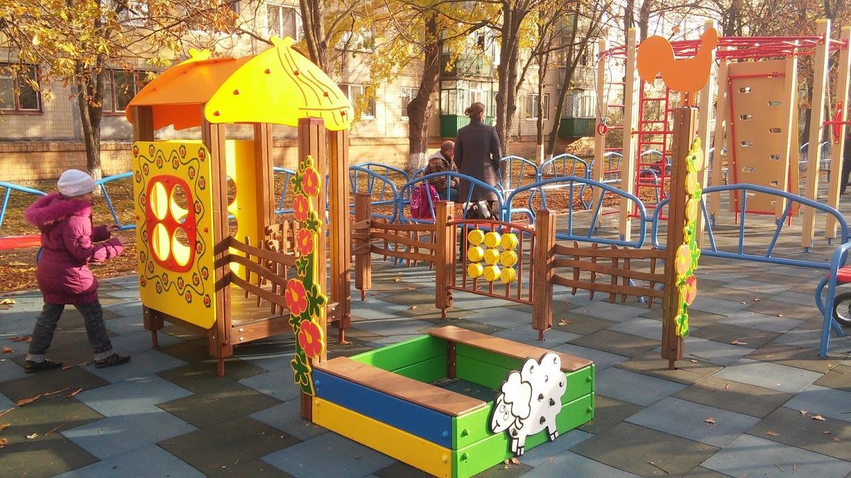 This is a mini playground, which includes a decorative fence, a small house, a sandbox, and other exterior components. It’s a private yard for children, where they play as they want to. A variety of game elements provides a diversity of games that kids may make up. Such a playground helps children to have a wonderful pastime outdoors far away from their gadgets.