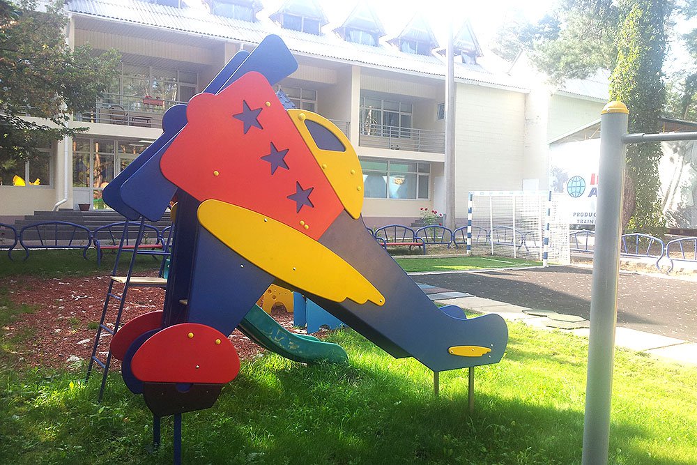 This slide is made in the shape of an aeroplane, which inspires children’s fantasies. This is game equipment that is a necessary part of any kid playground. Besides having a lot of fun during the games, children gain developing muscles, agility, motor skills, and more. Also, the slide helps kids to spend a lot of time in the fresh air.