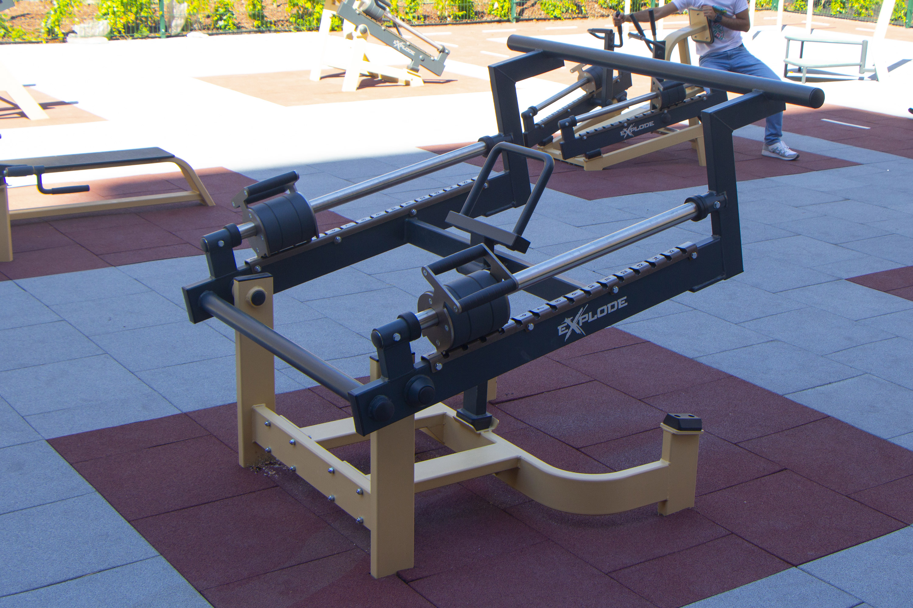 Super strong anti-vandal construction is made of 3 mm steel. Zinc-galvanised version of the equipment has the highest level of metal protection against corrosion. The machines are adapted to any unfavourable external factors and stand out with the best anti-corrosion resistance, thanks to the covering of zinc. You can install the equipment both outside and in a gym. Undeniable advantages of the machine are trendy design, fine function, and wide colour palette.