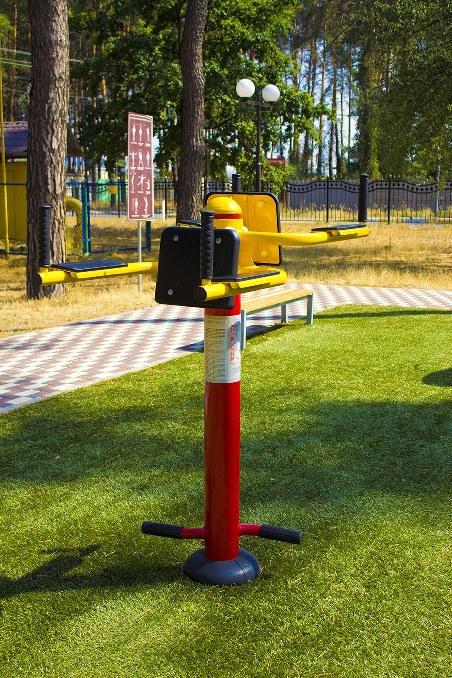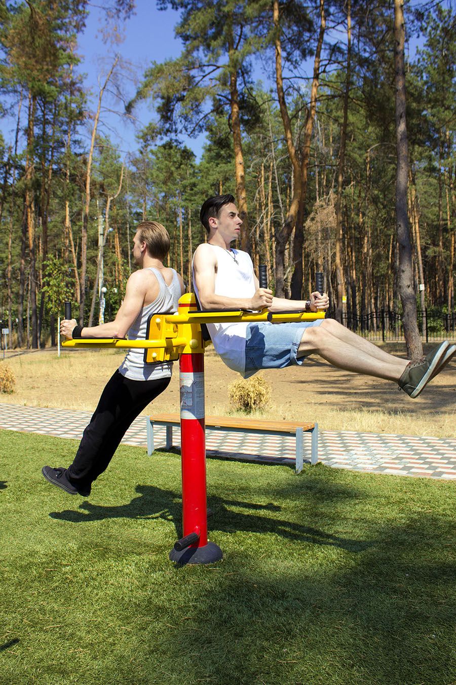 The equipment is made of metal, which is covered with polymer powder paint. Due to this, the machine has resistance to external factors and anti-vandal protection. Reliable metal construction lets people with any weight work out. This equipment is recommended for training women and men of age from 14 to 70.