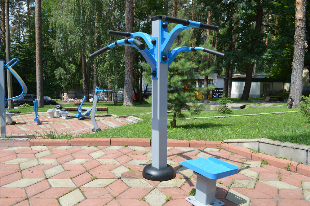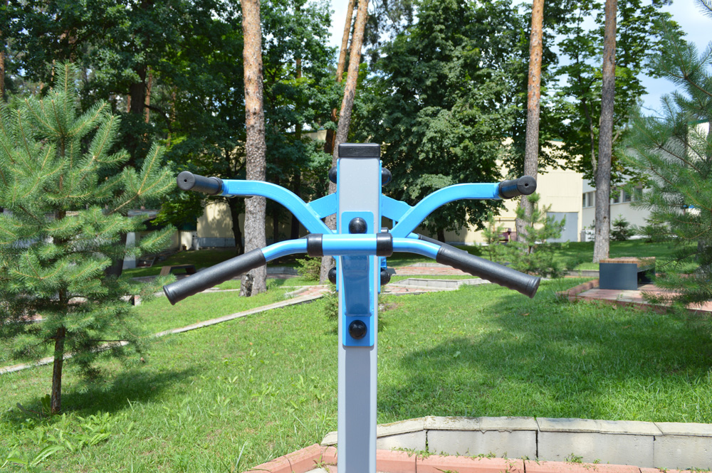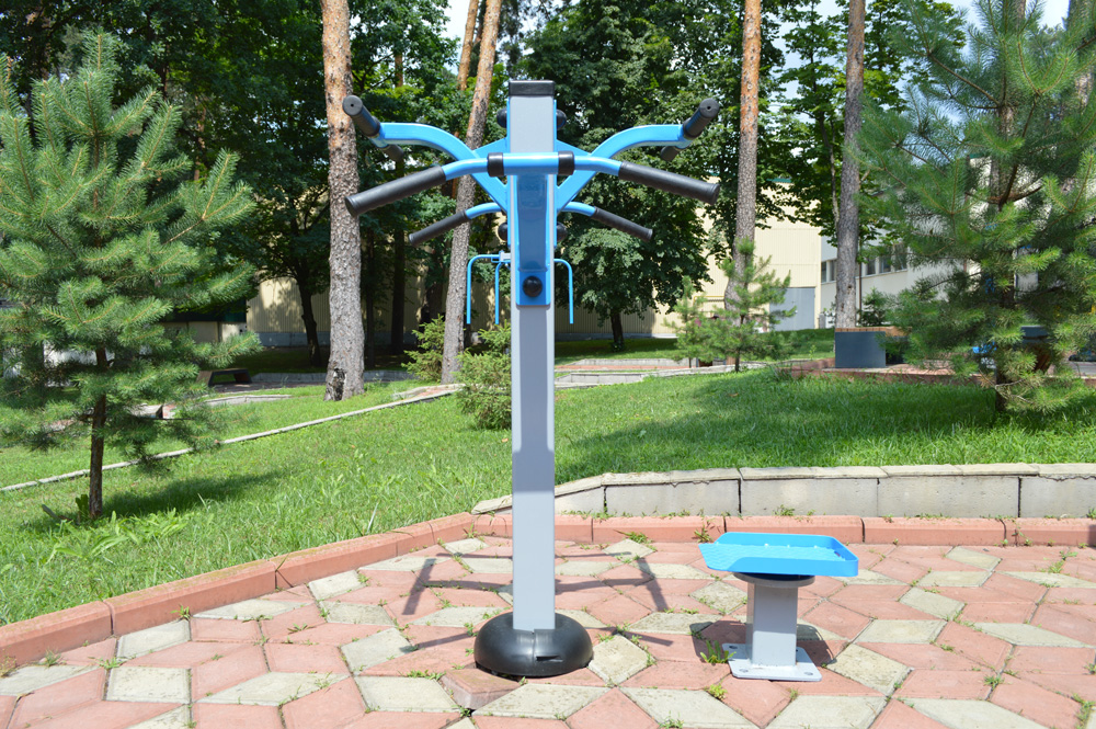 This training complex is aimed at simultaneous workouts of up to four people in the fresh air. It lets fitness groups and rehabilitation classes perform different exercises. Or athletes can just train together with their friends. The twister helps improve muscles in the upper part of the body, coordination, and balance.