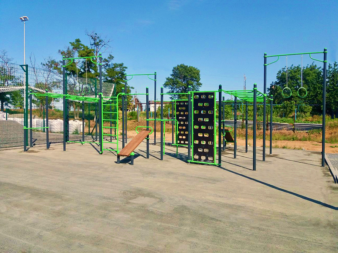 Workout Complex S831.13 has so much effective training sports devices that it is difficult to list them all. Gymnastics rings, climbing walls, bars of all kinds, and benches for performing ab exercises – not every gym can boast of having such an amount of equipment. This outside complex is reliable and durable and serves athletes for years.